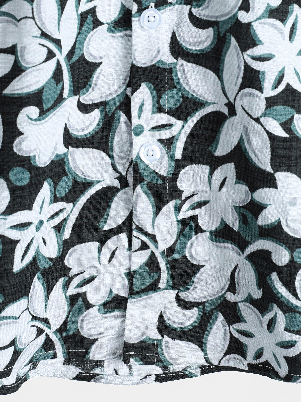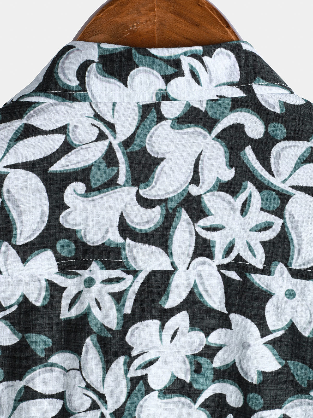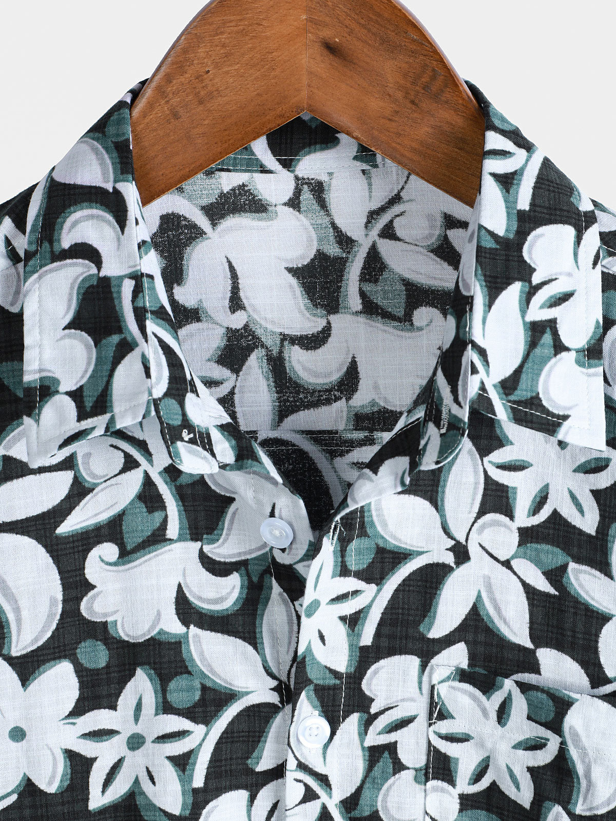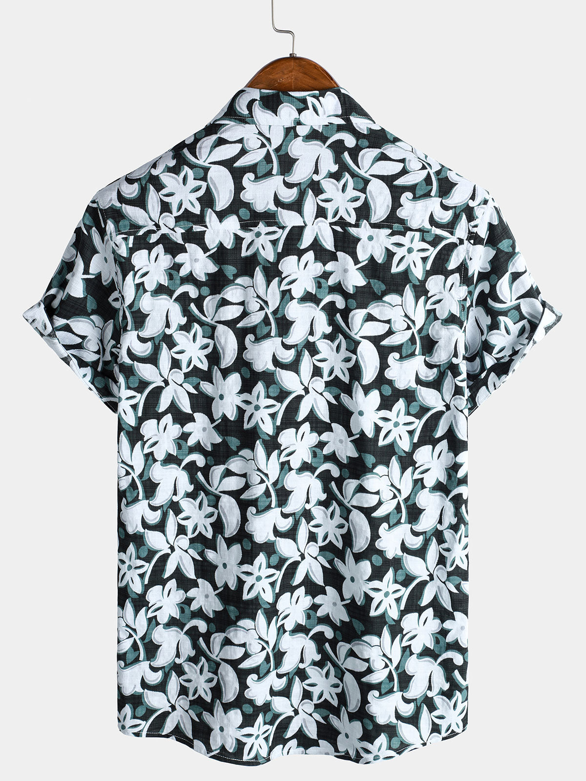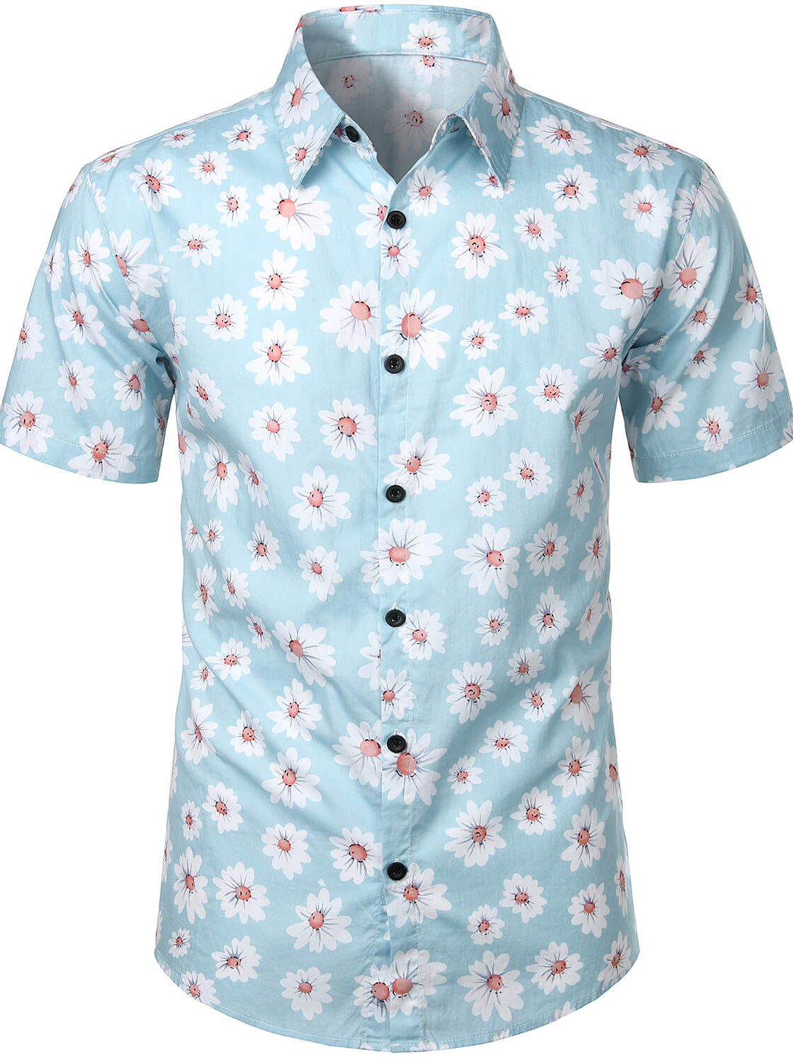 Camisa hawaiana de algodón de manga corta con estampado floral de margaritas para hombre