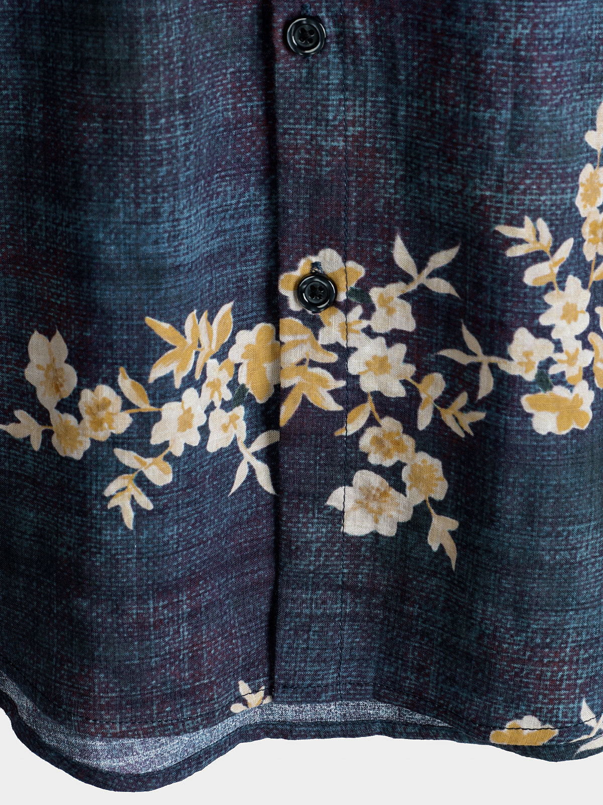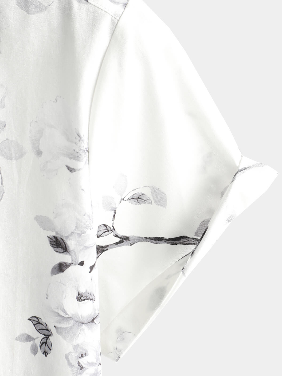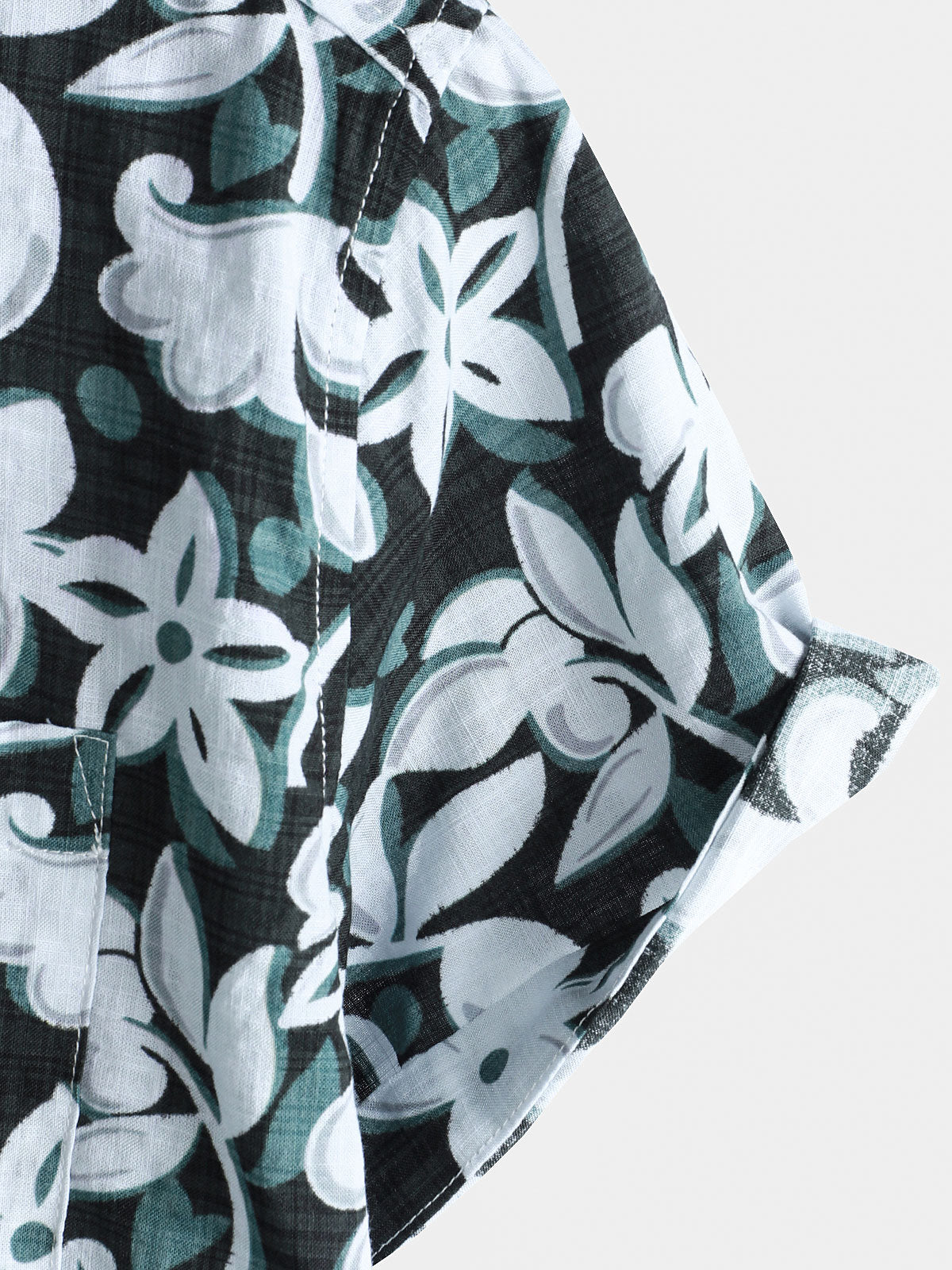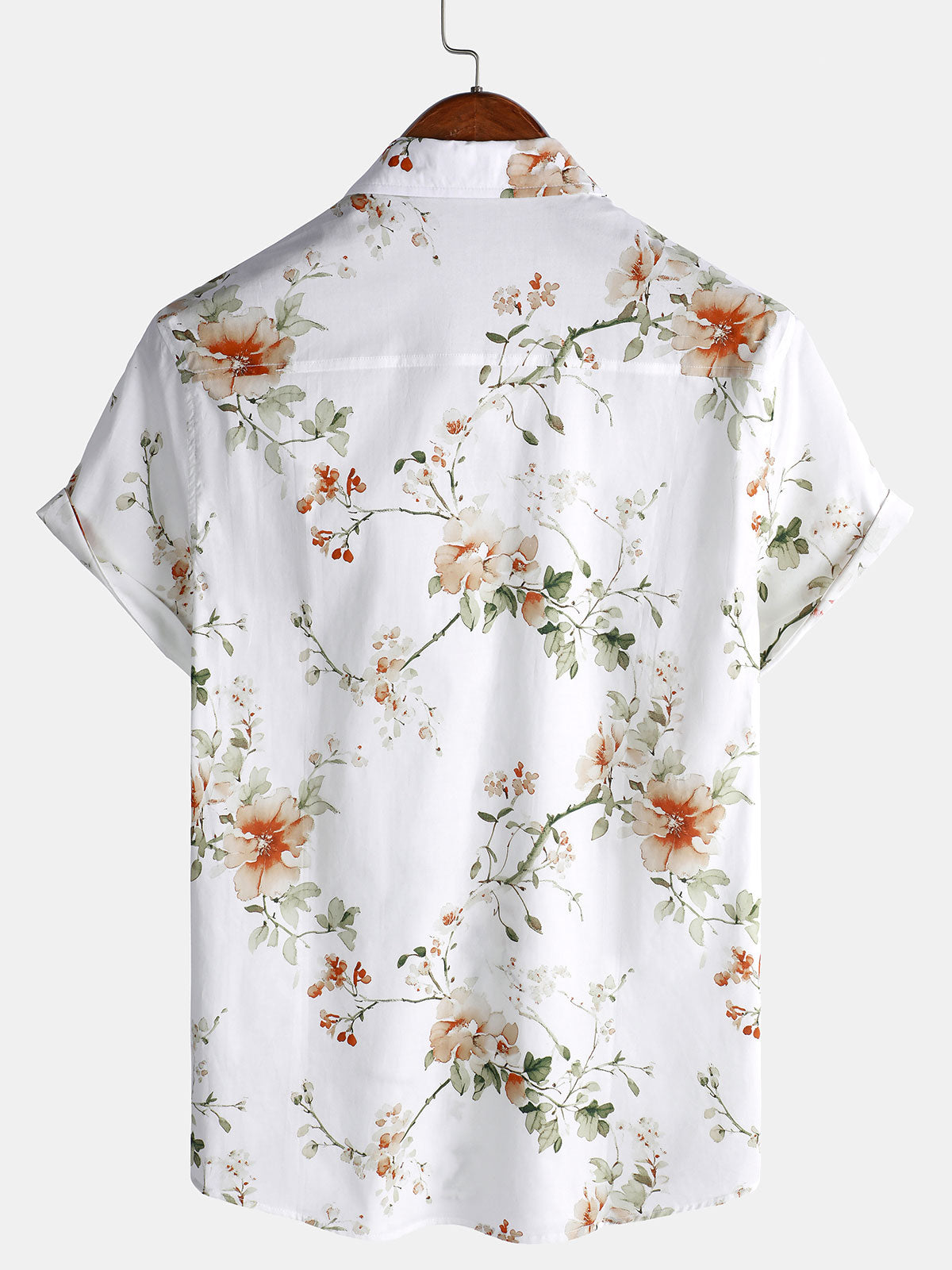 Camisa hawaiana de algodón de manga corta con estampado floral de margaritas para hombre