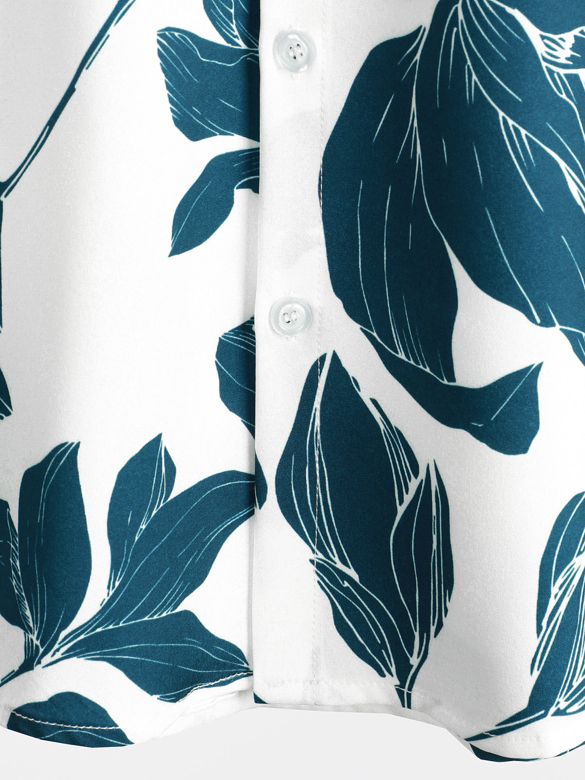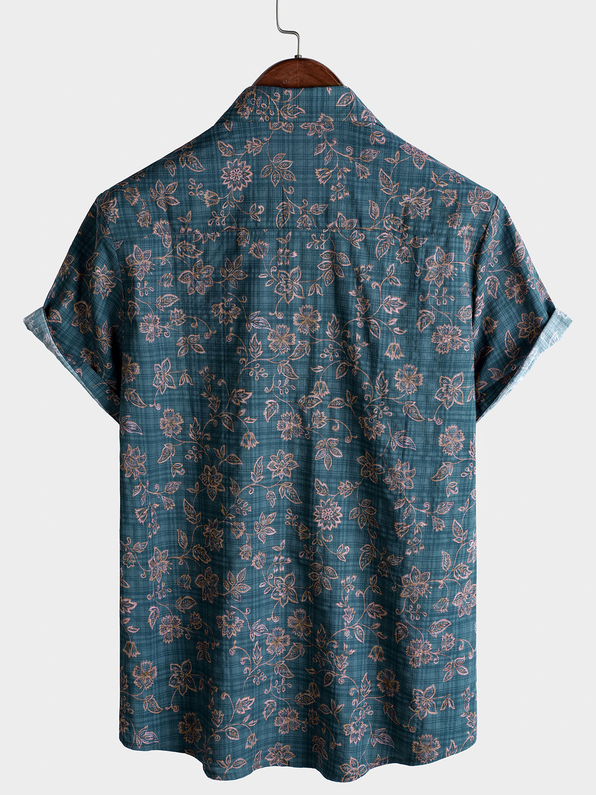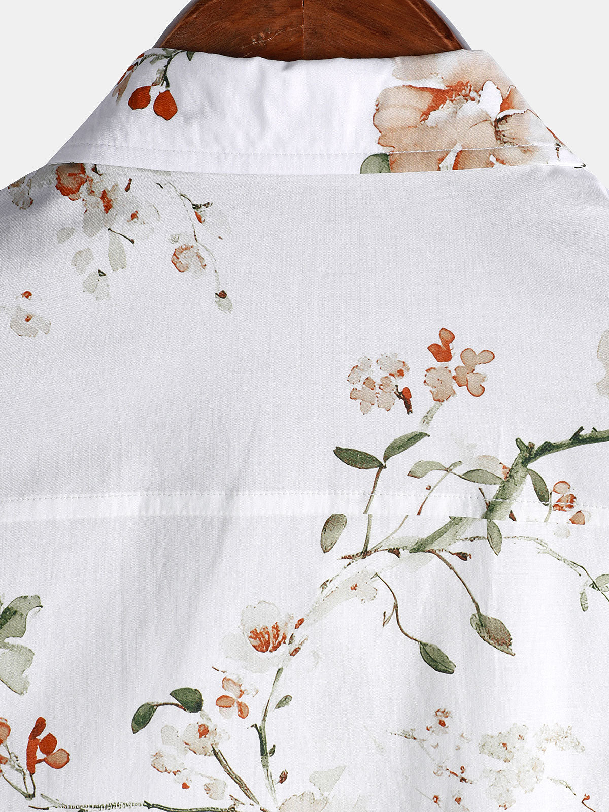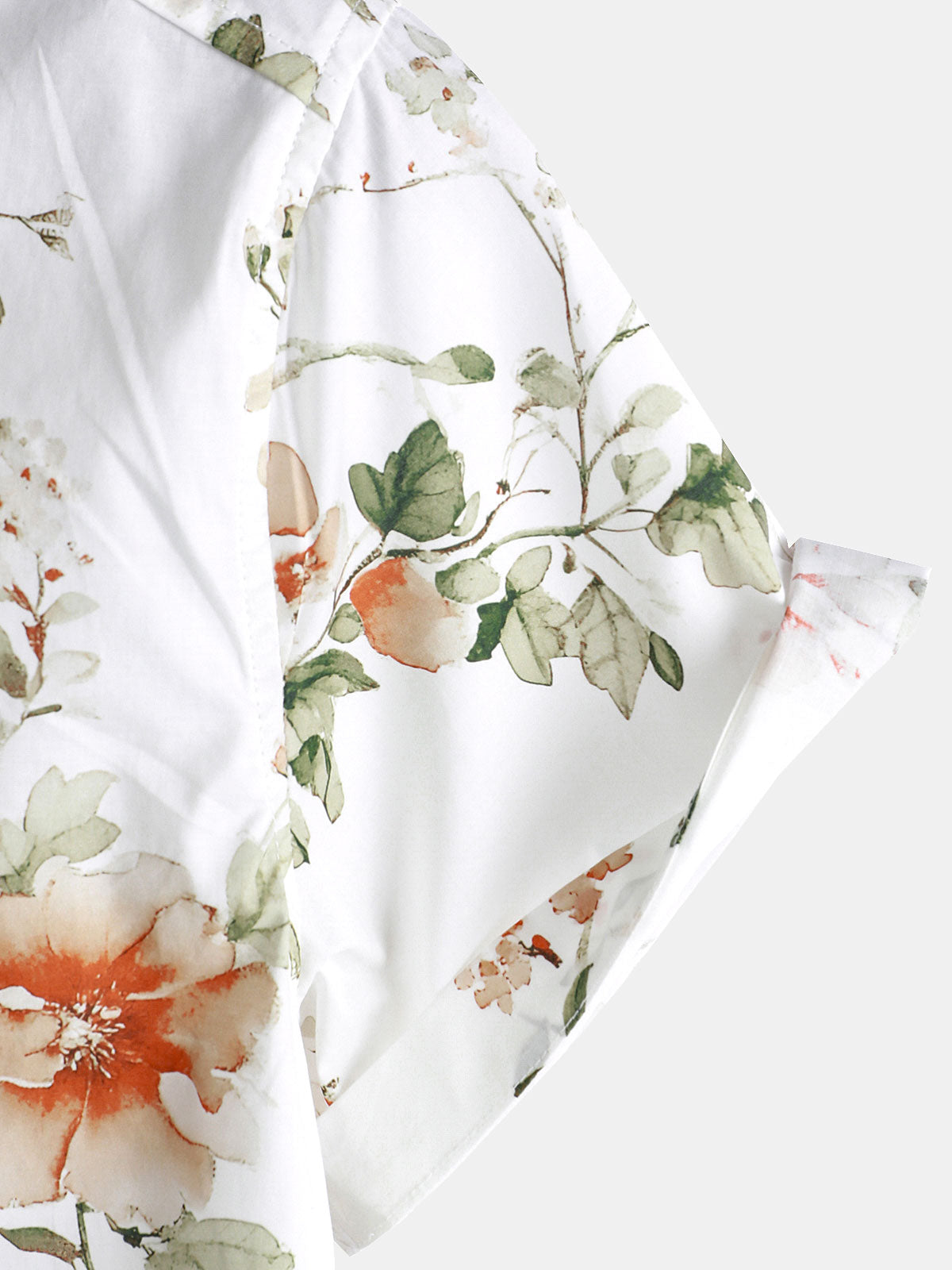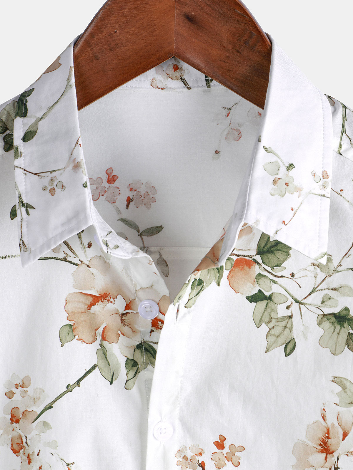 Camisa hawaiana de algodón de manga corta con estampado floral de margaritas para hombre