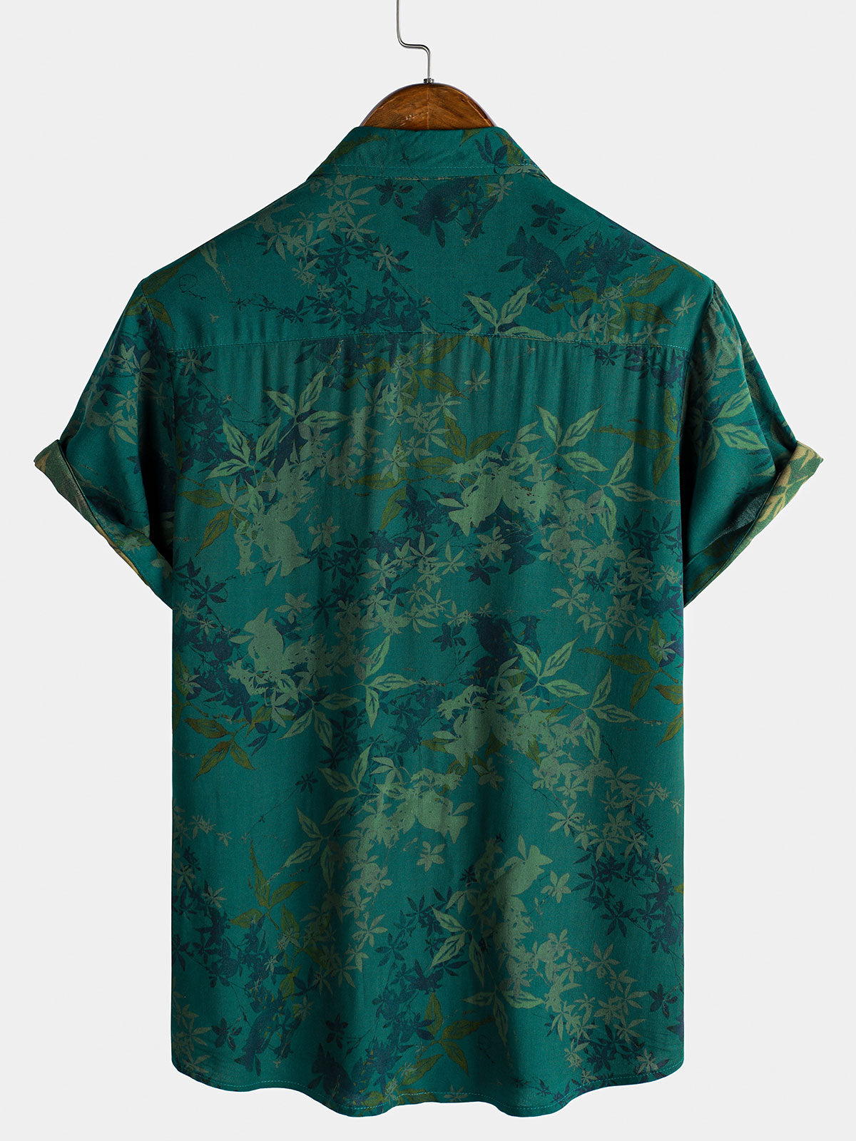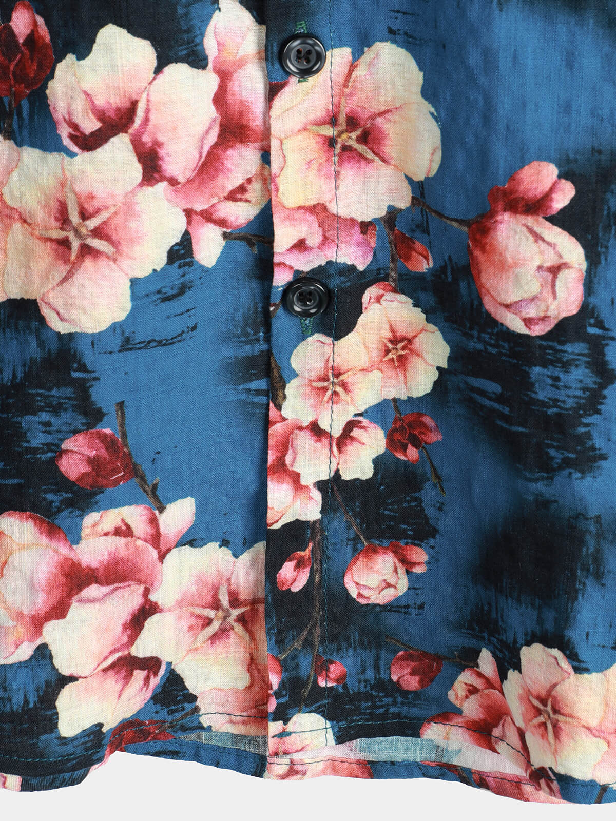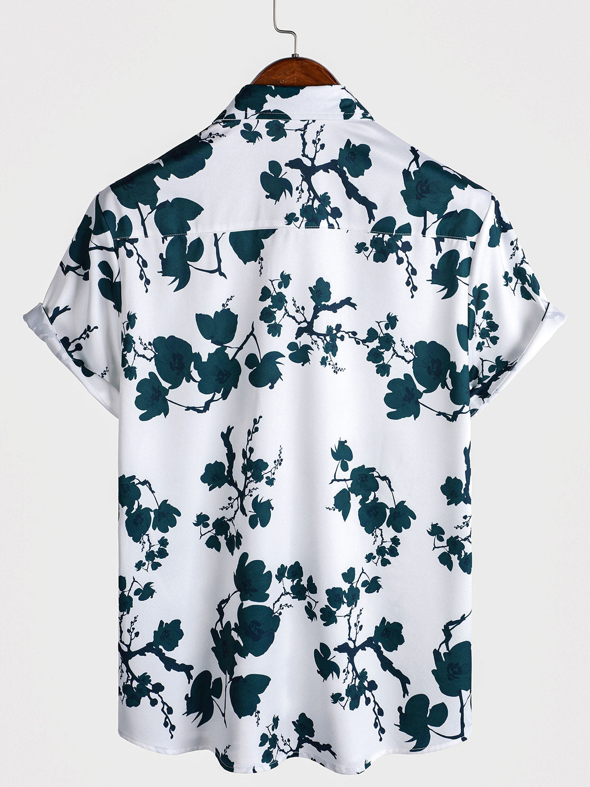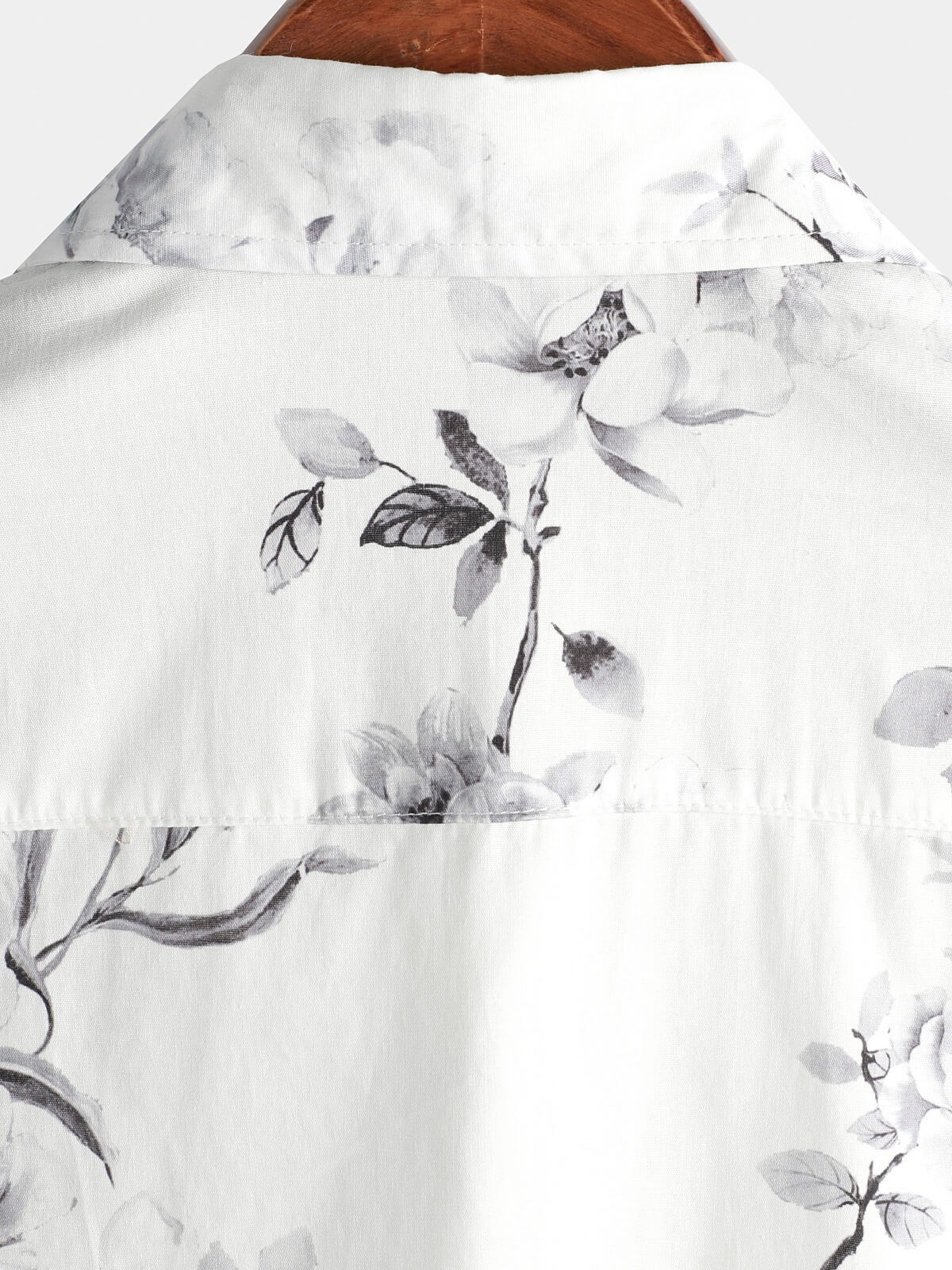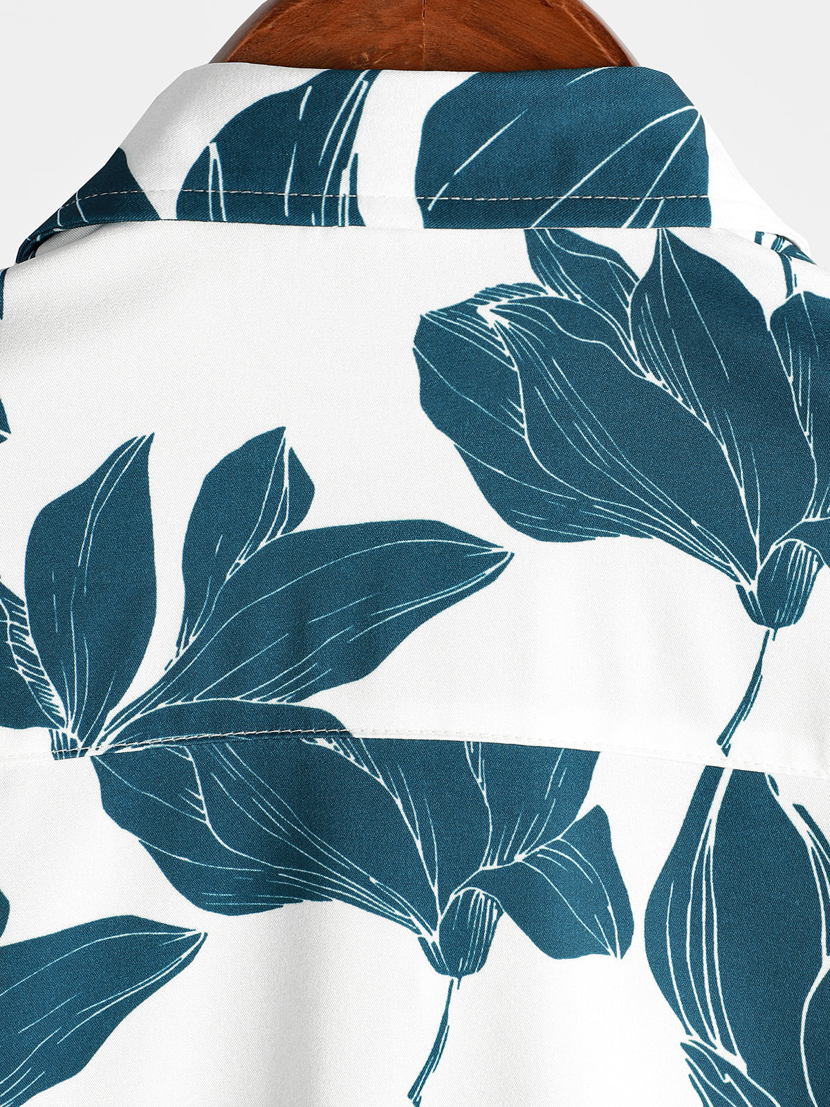 Camisa hawaiana de algodón de manga corta con estampado floral de margaritas para hombre