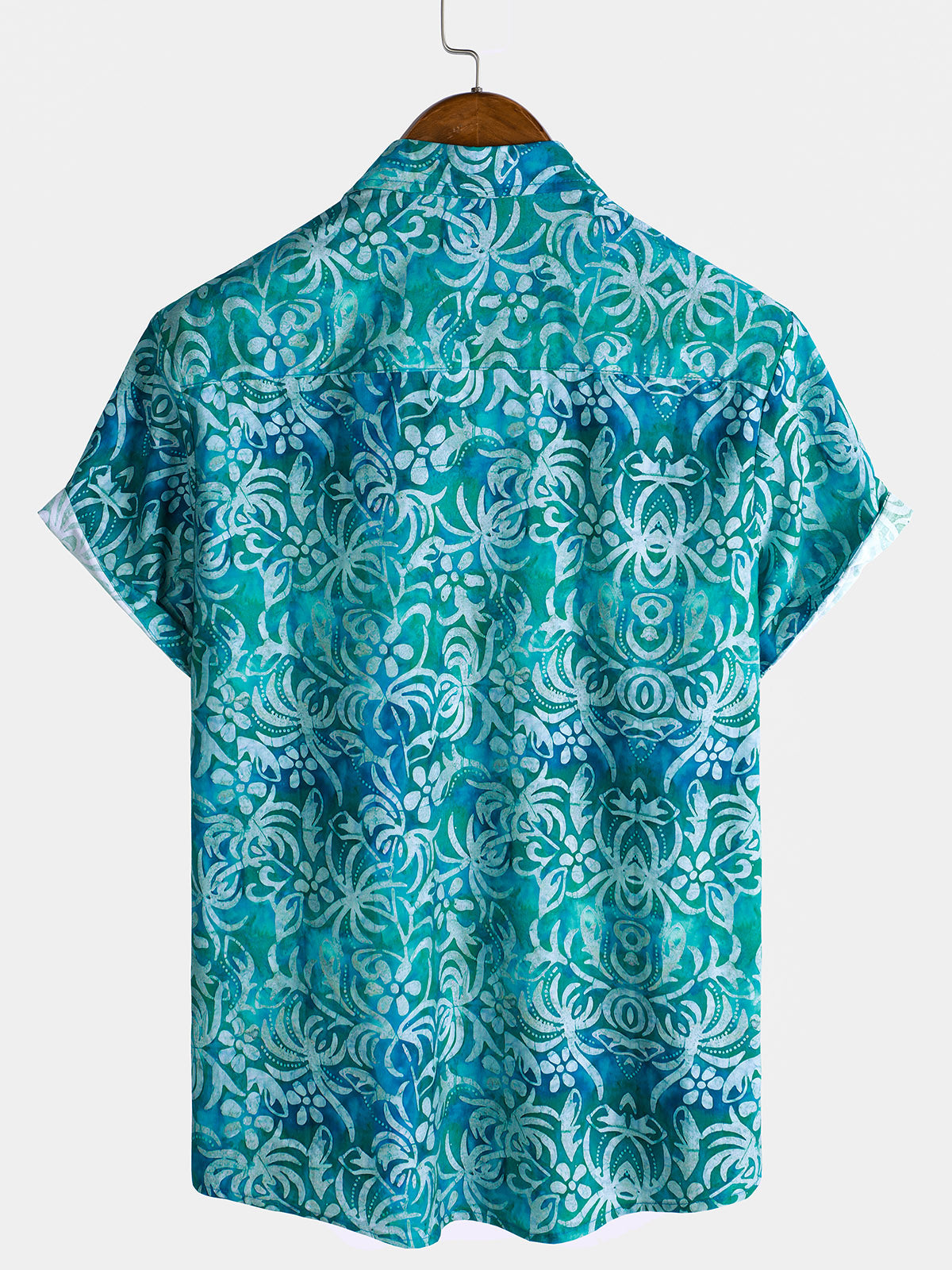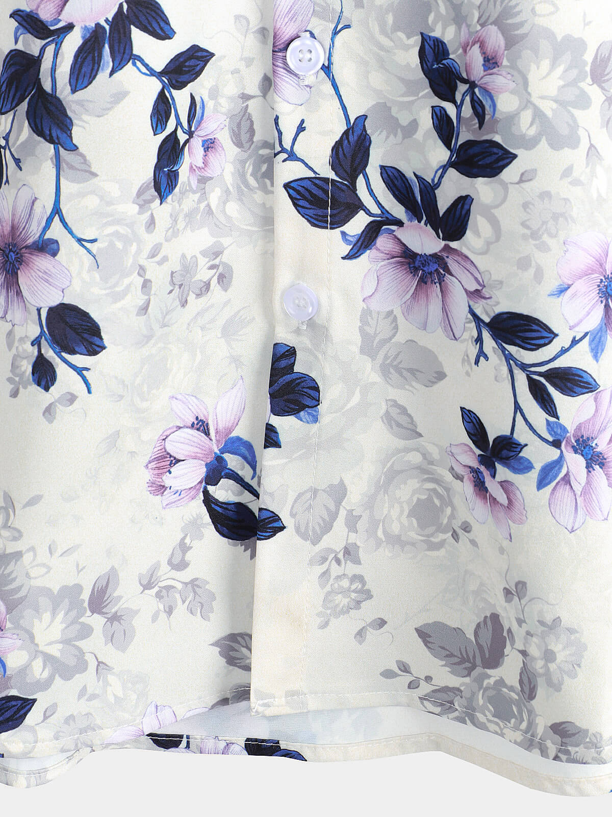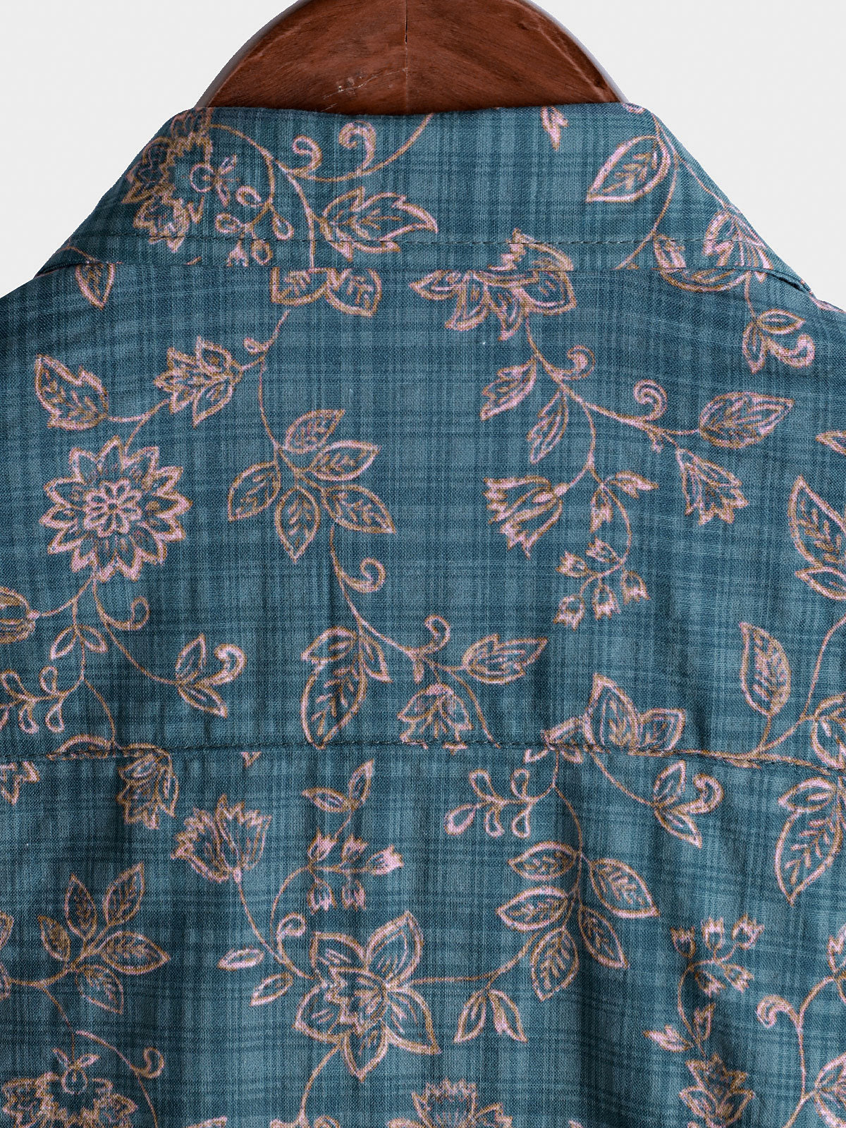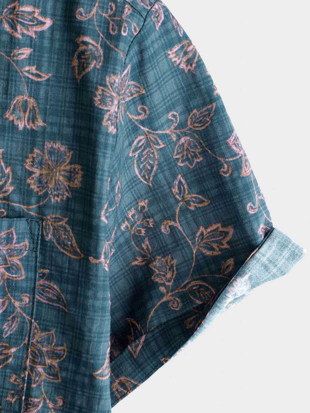 Camisa hawaiana de algodón de manga corta con estampado floral de margaritas para hombre