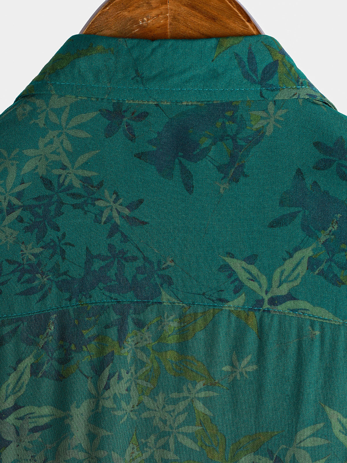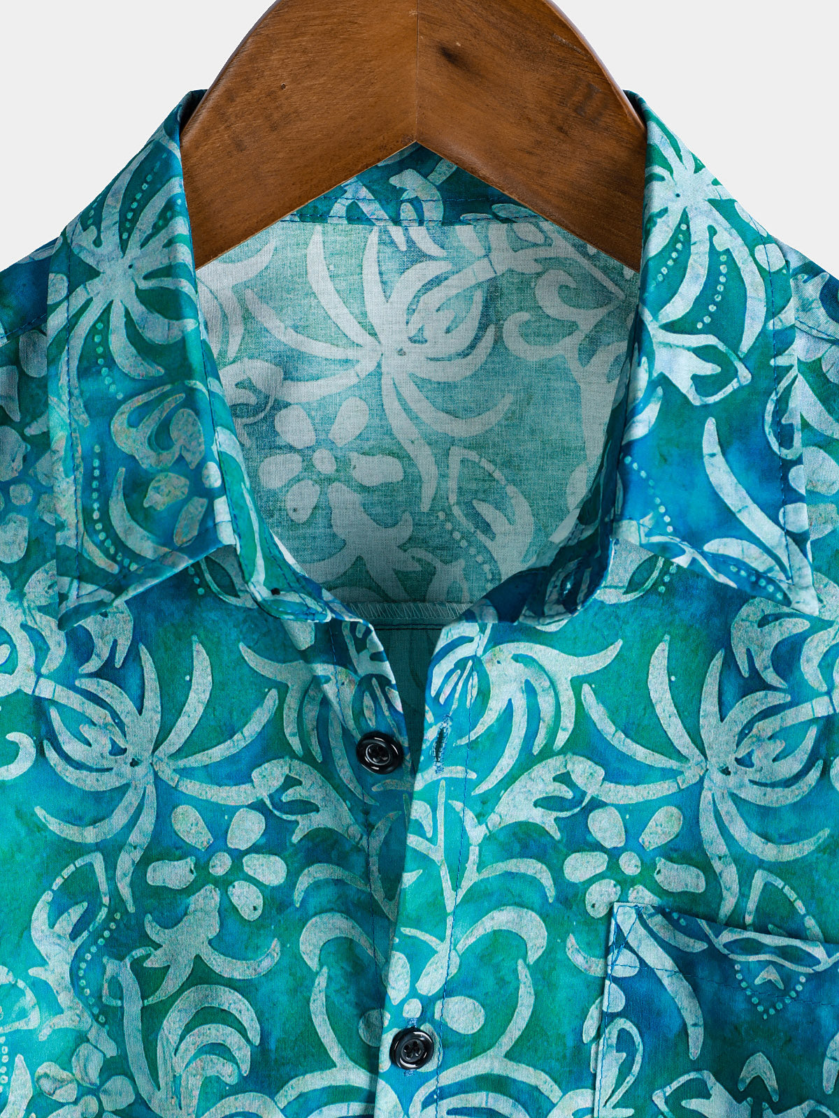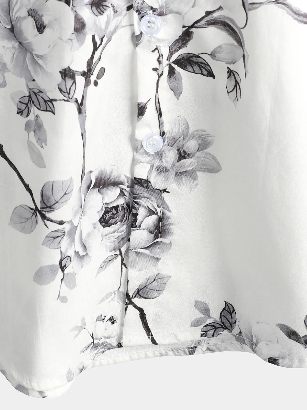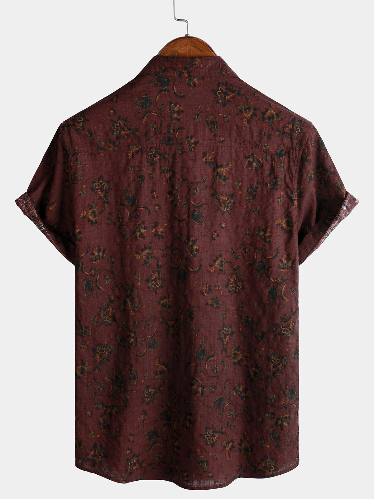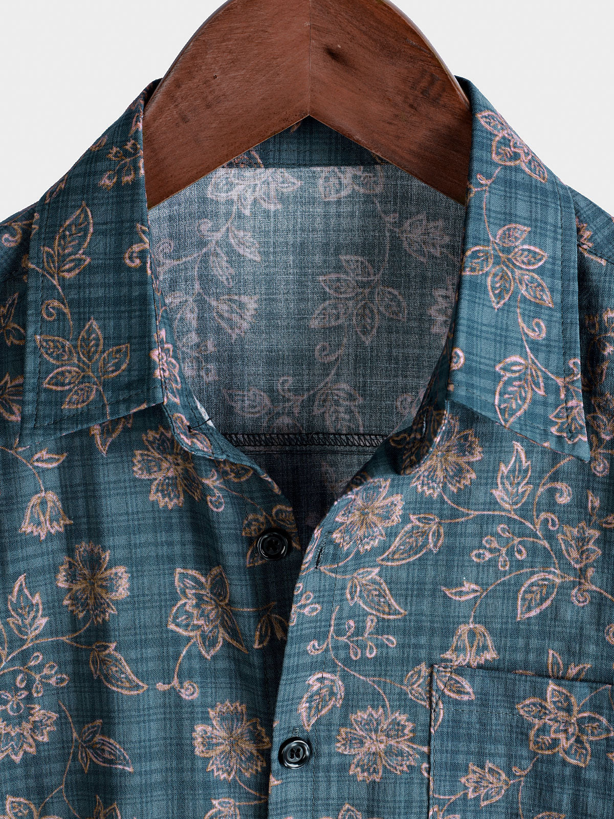 Camisa hawaiana de algodón de manga corta con estampado floral de margaritas para hombre