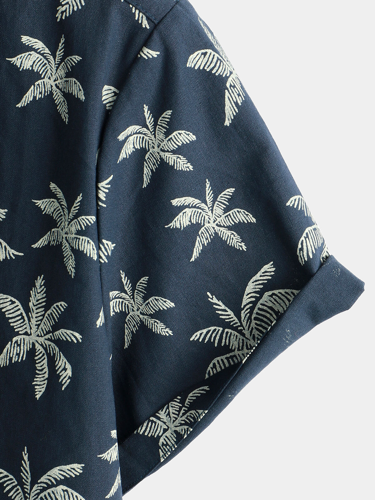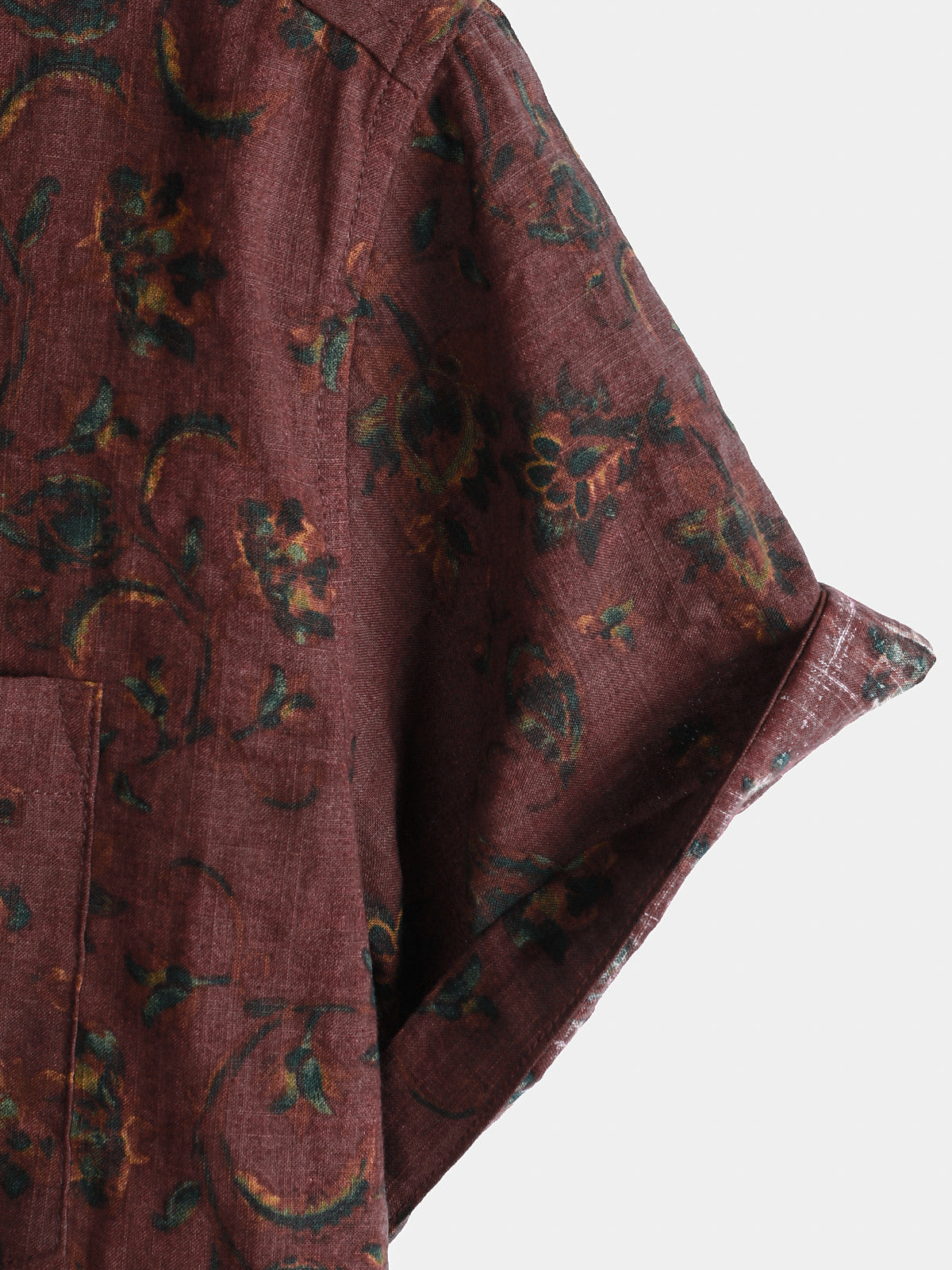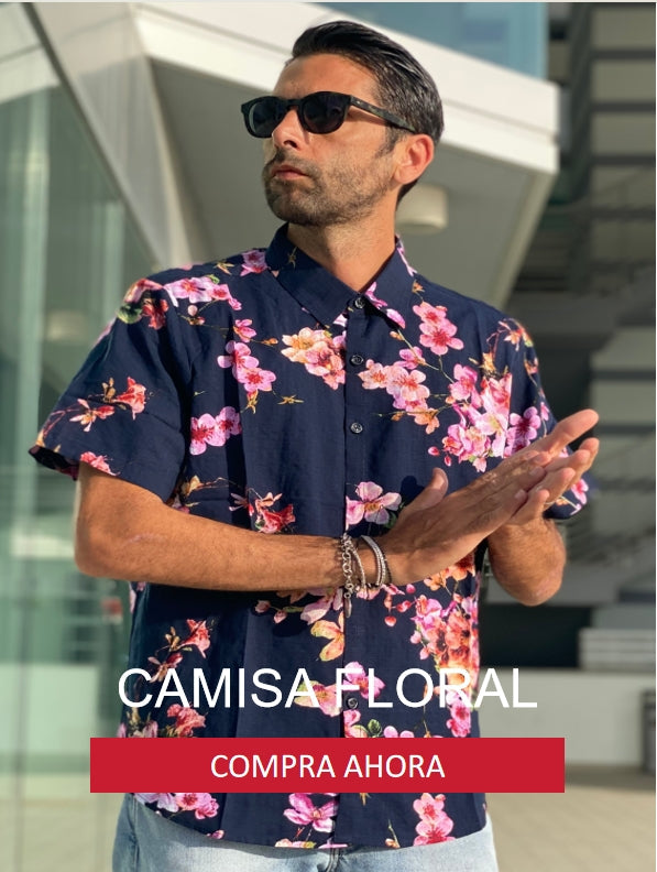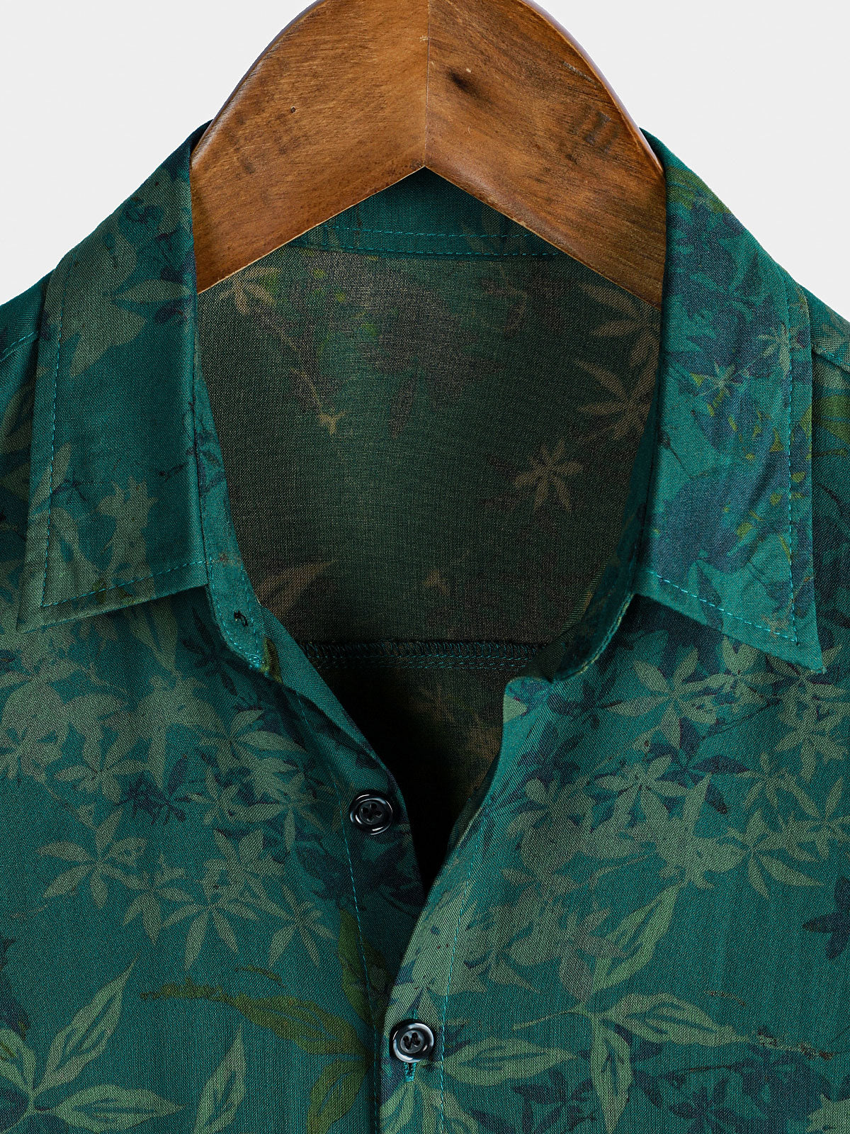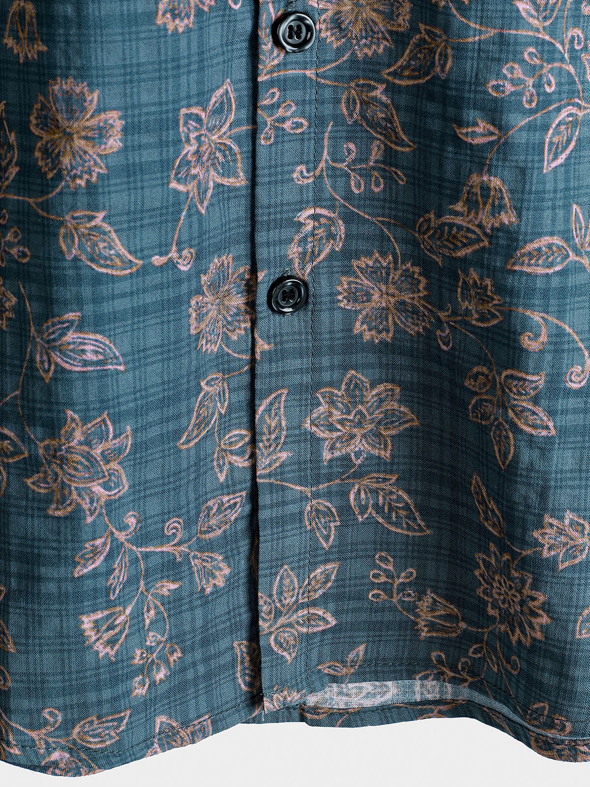 Camisa hawaiana de algodón de manga corta con estampado floral de margaritas para hombre