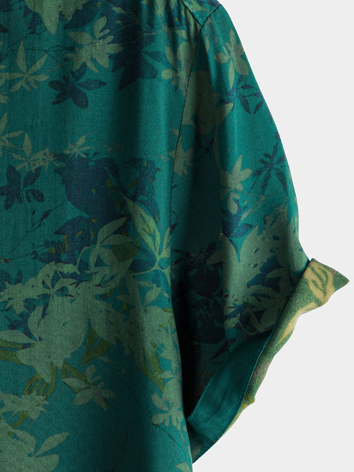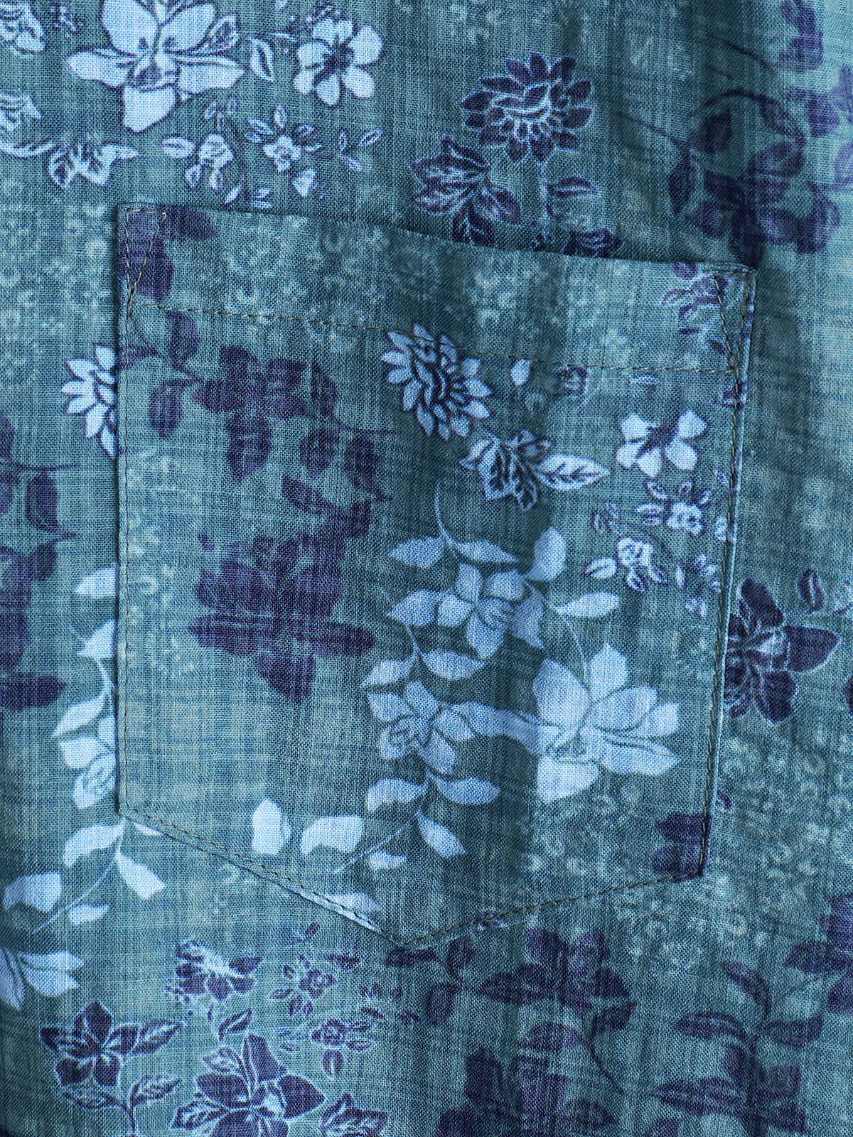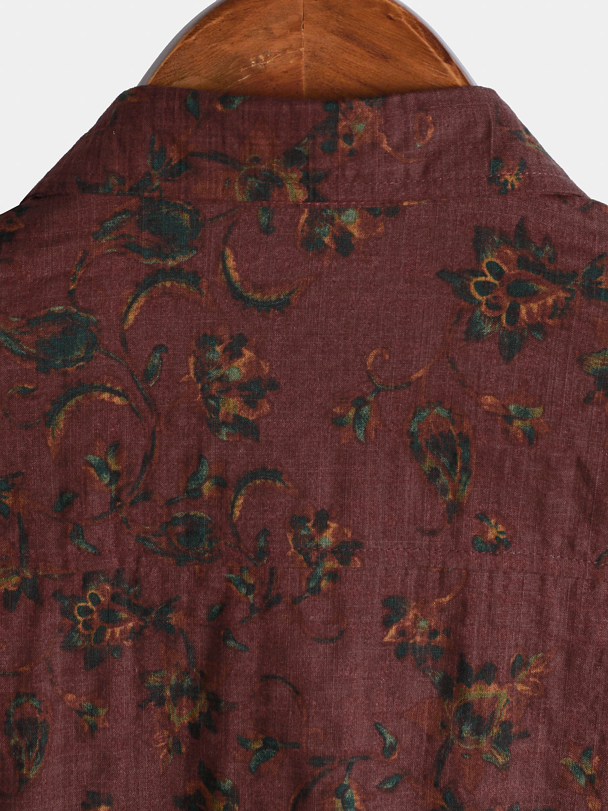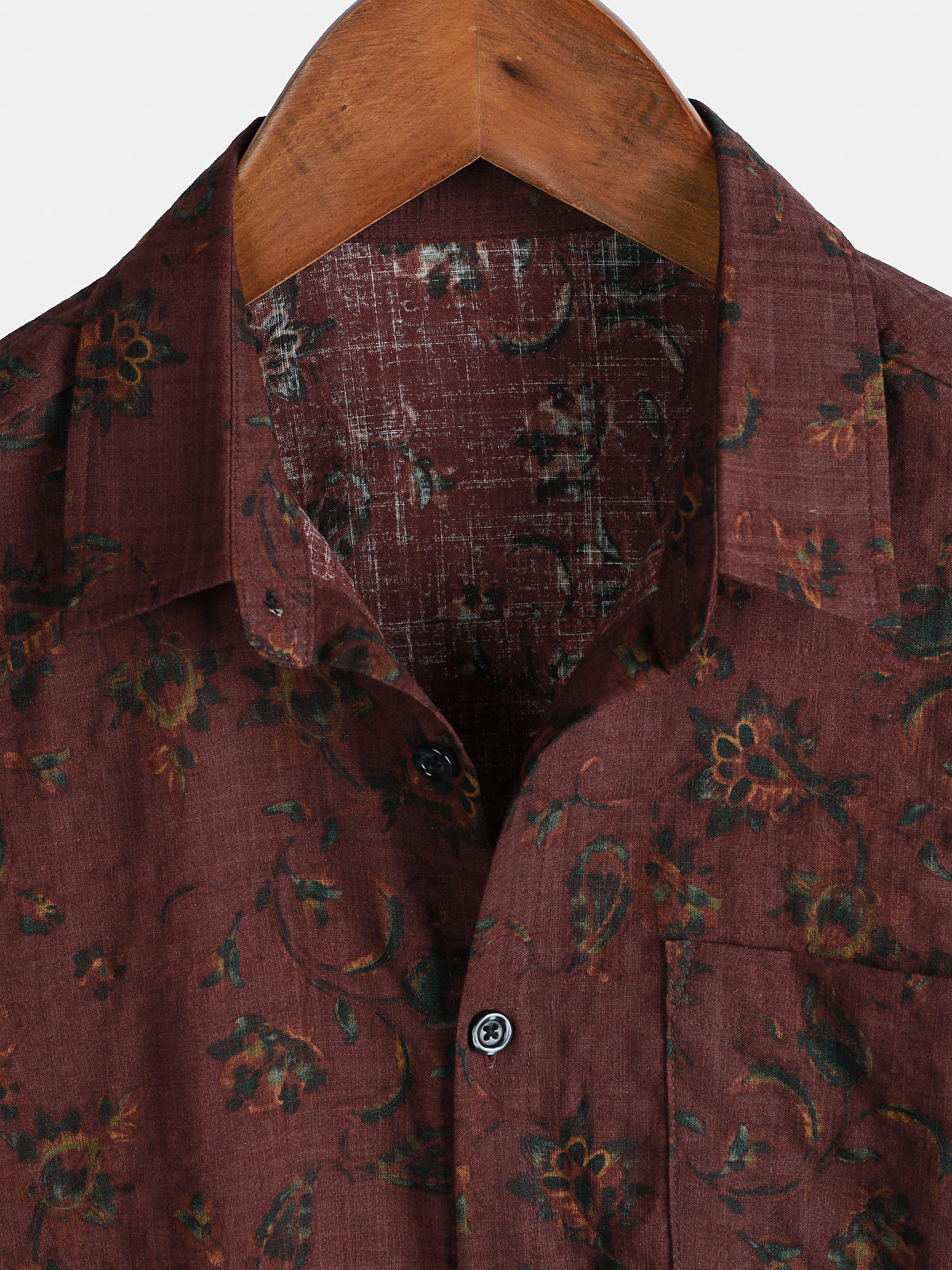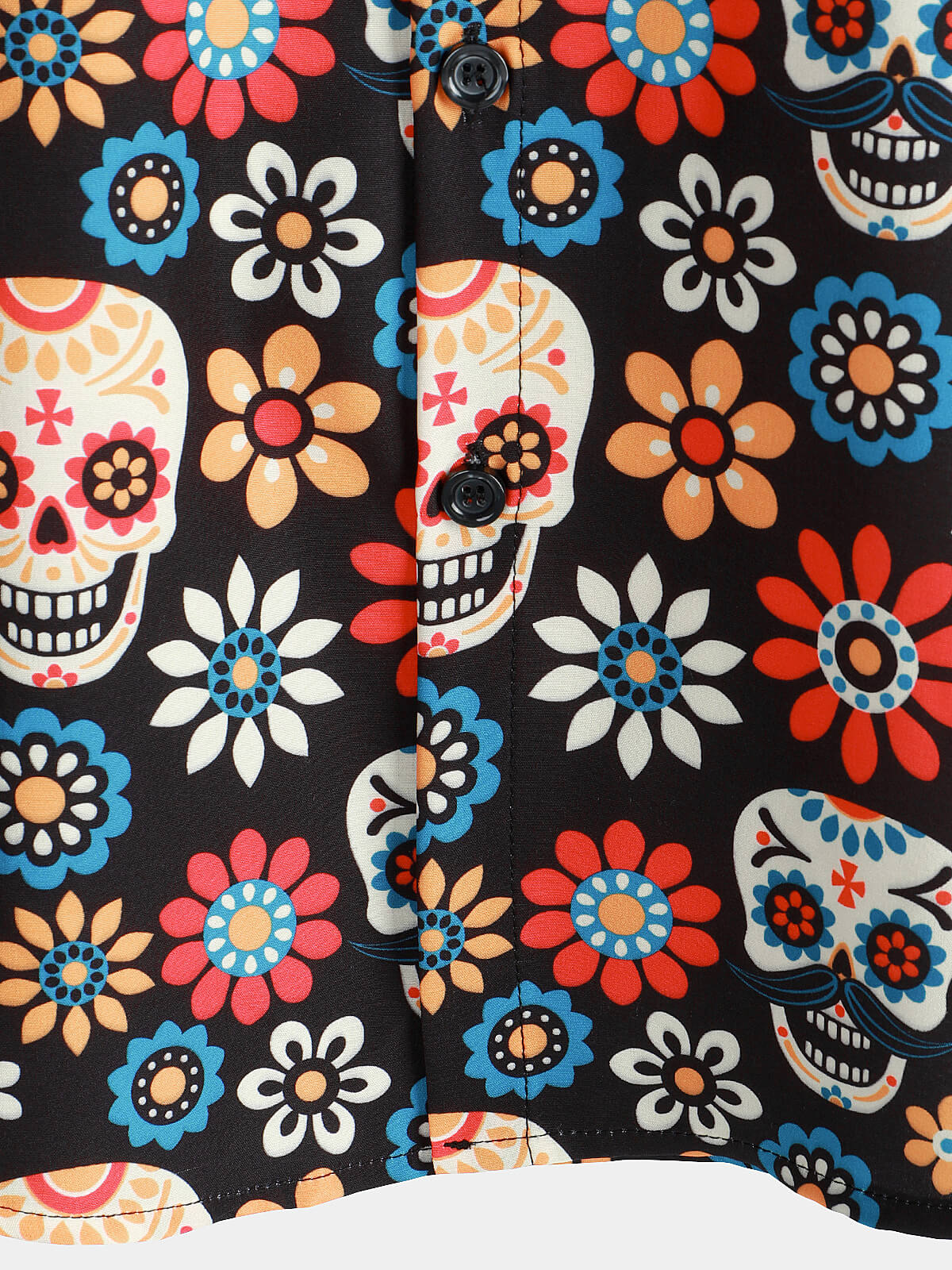 Camisa hawaiana de algodón de manga corta con estampado floral de margaritas para hombre