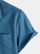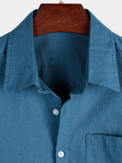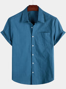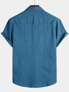 Camisa de manga corta de lino y algodón con bolsillo para hombre