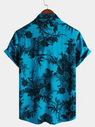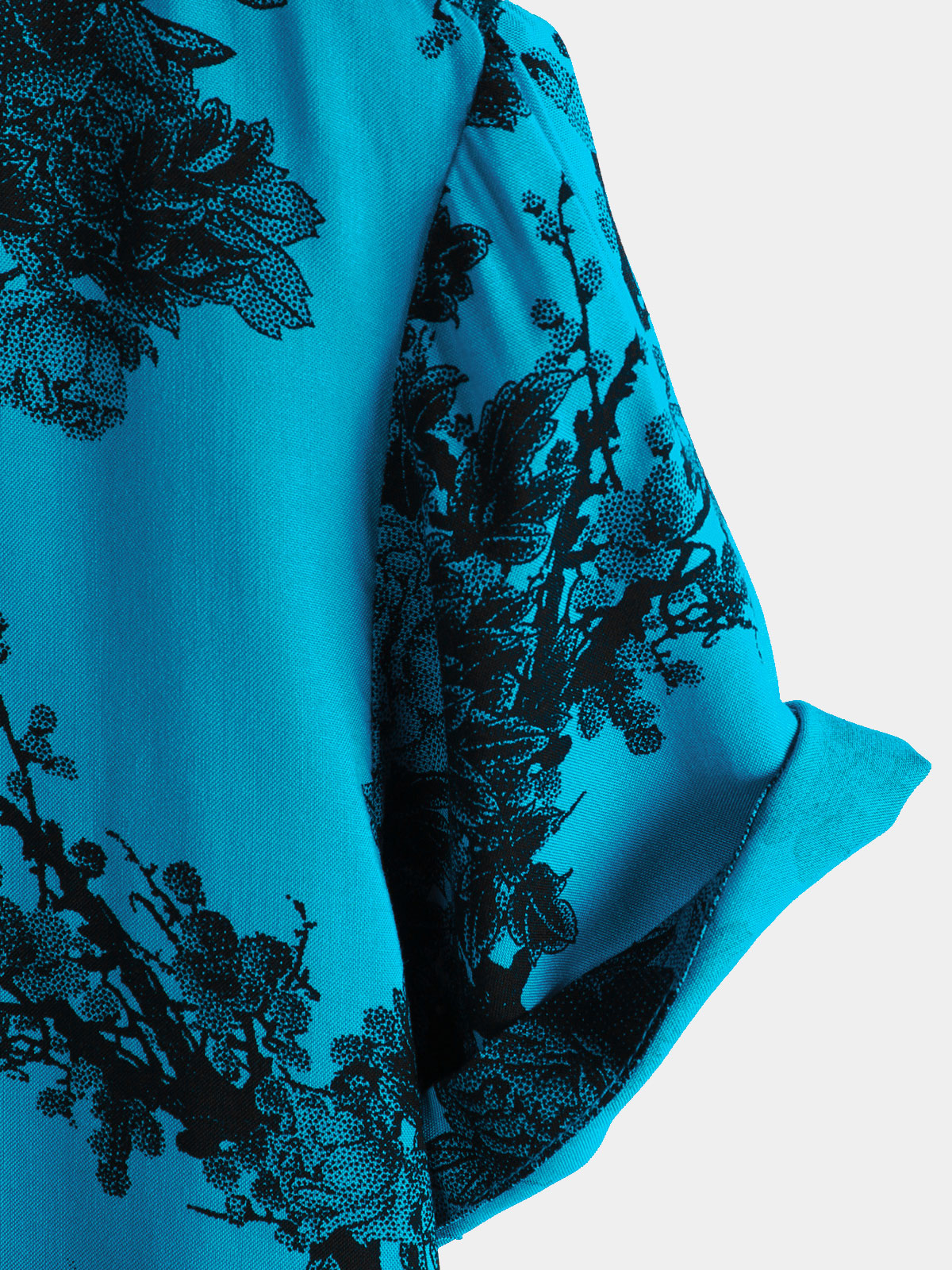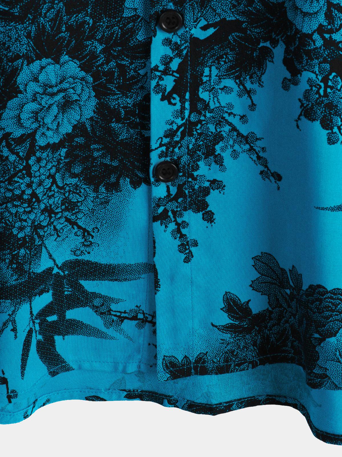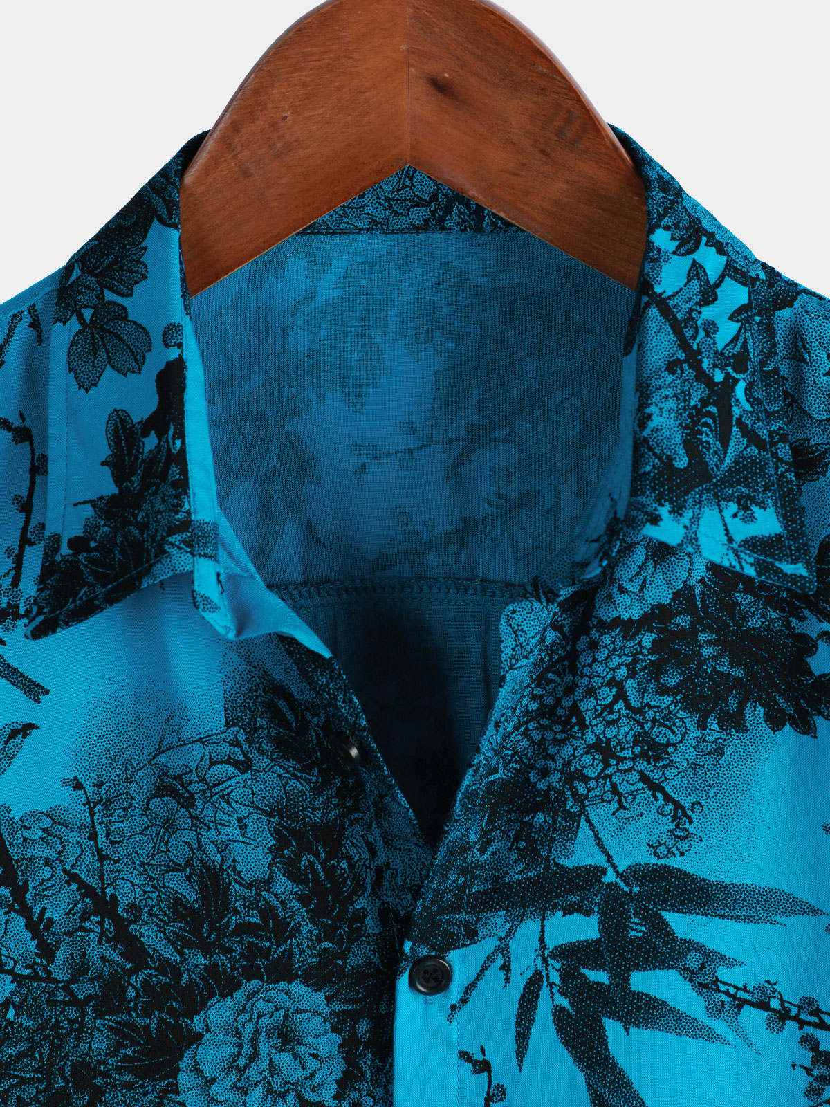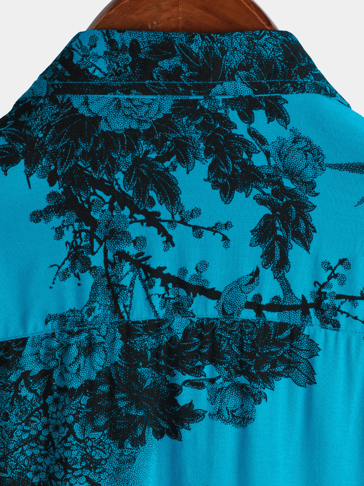 Camisa de manga corta transpirable con estampado floral retro azul para hombre