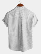 Camisas casuales de rayas de manga corta con cuello alto y transpirables para hombres
