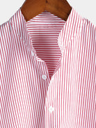 Camisas de rayas de manga corta con cuello alto y transpirables para hombre