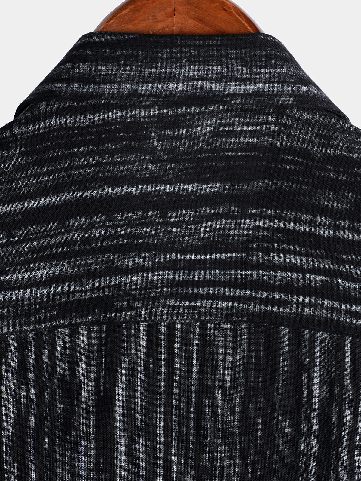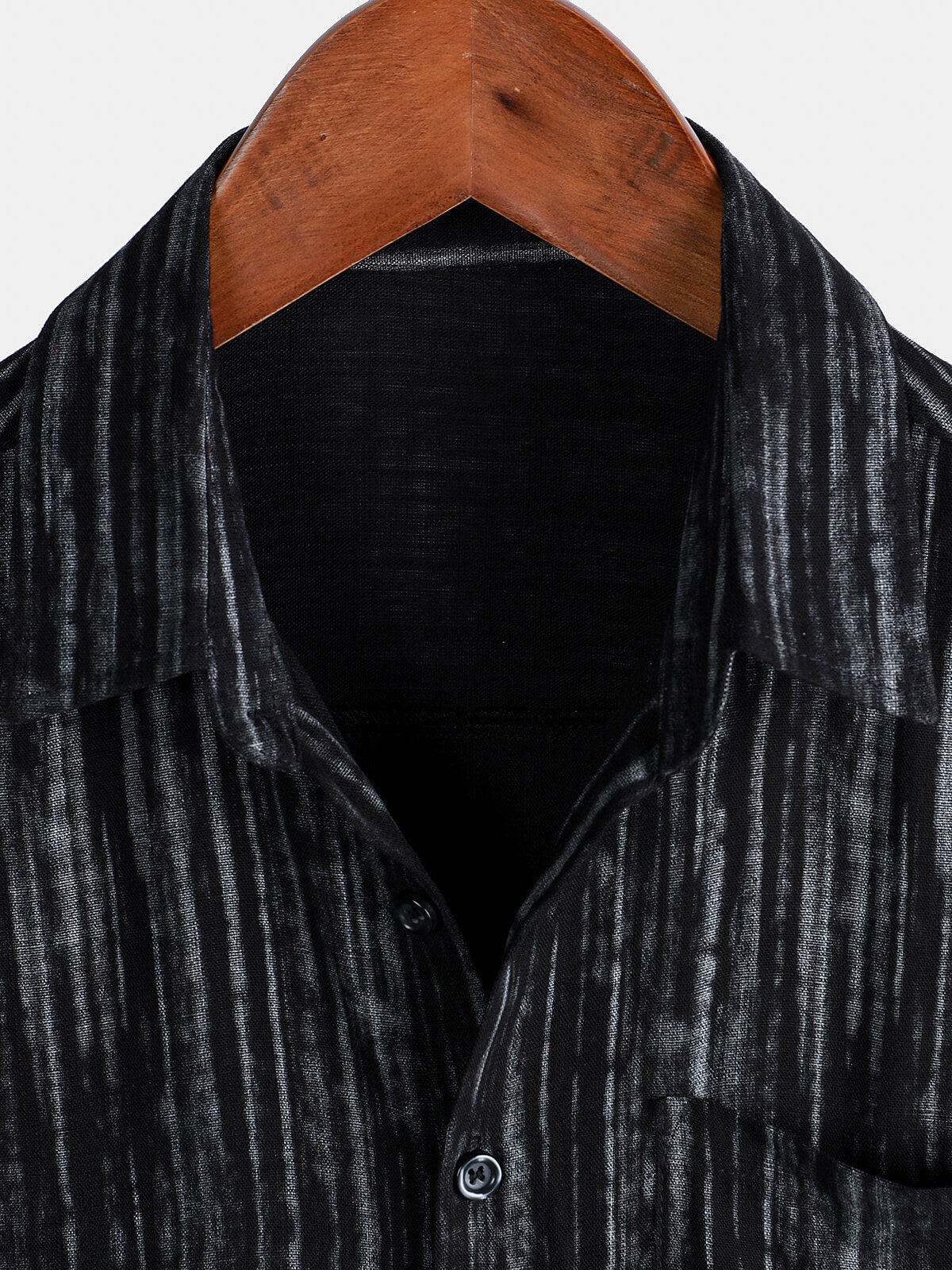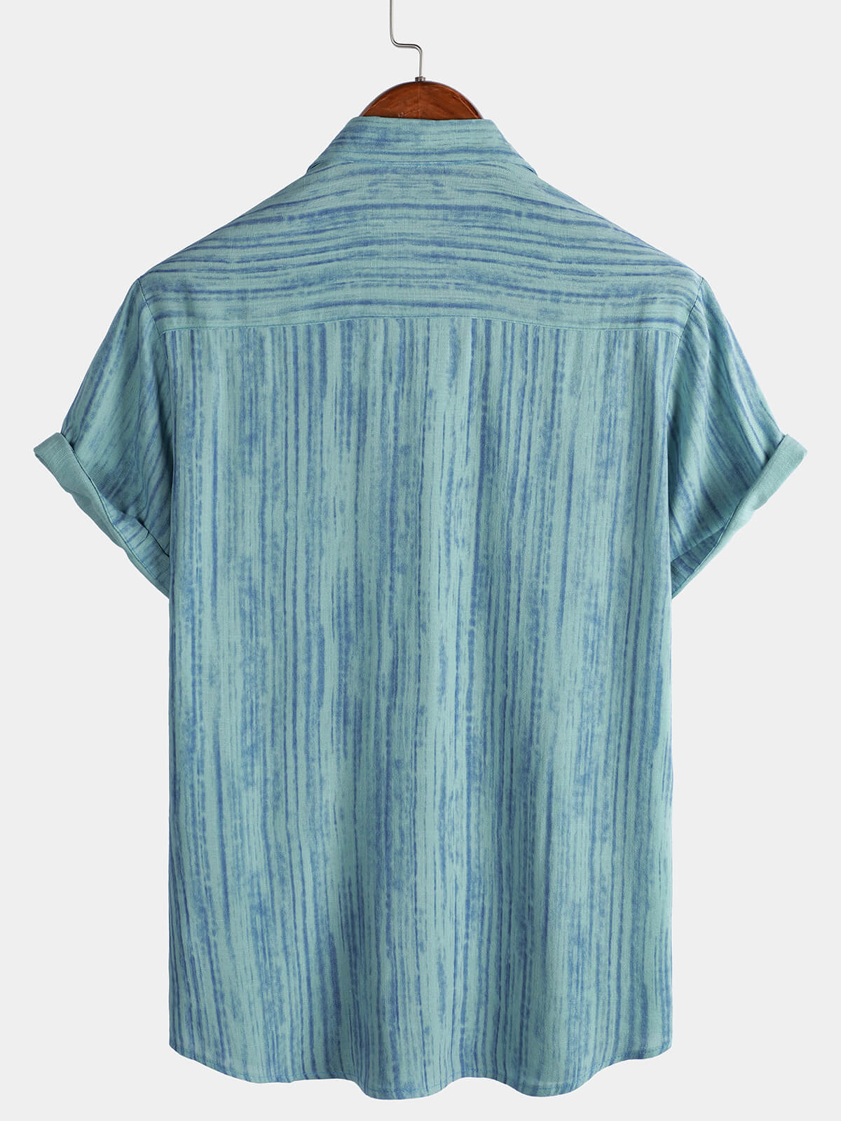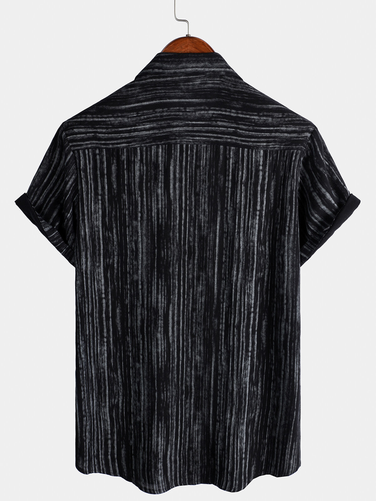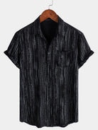 Camisa de manga corta transpirable con bolsillo y rayas negras para hombre