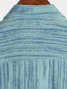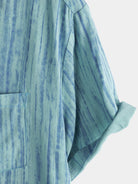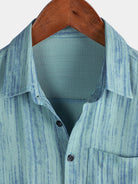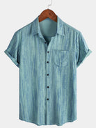 Camisa de manga corta transpirable con bolsillo y rayas azules para hombre