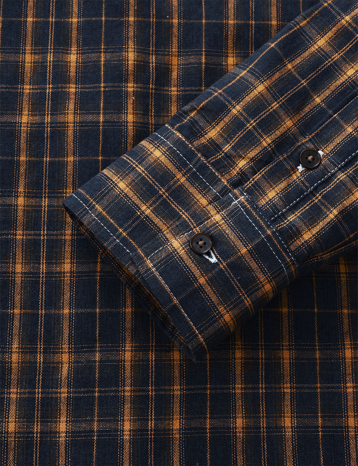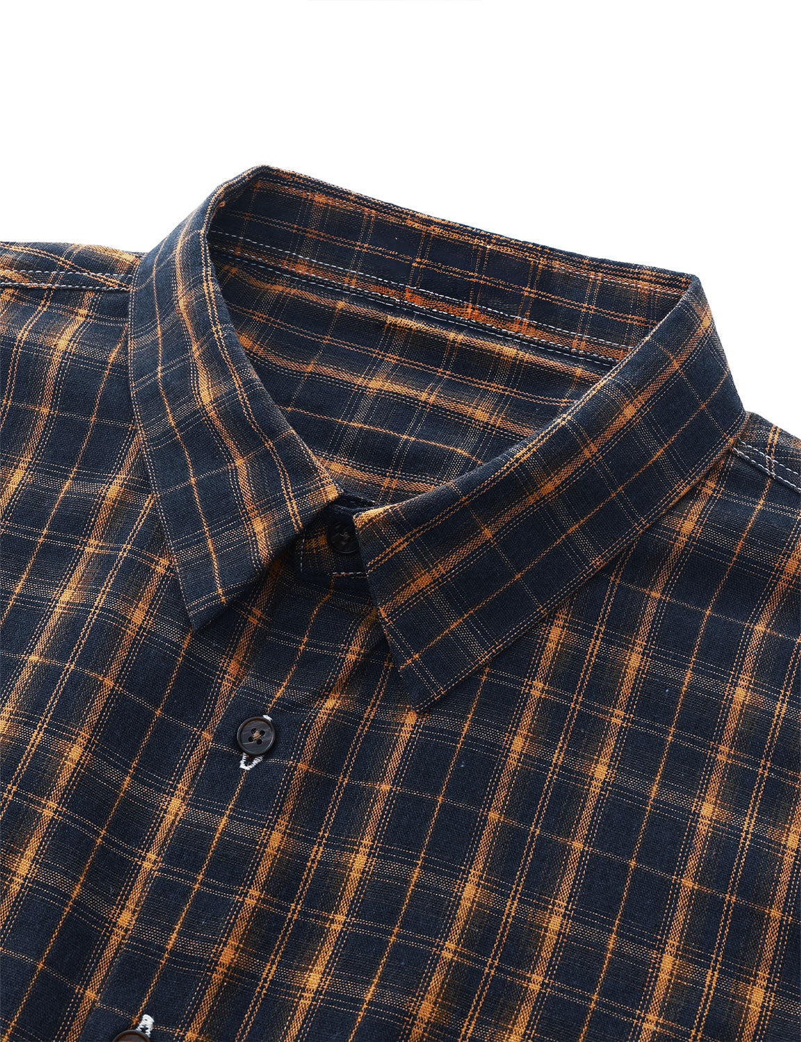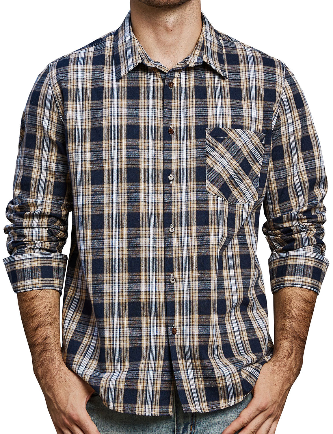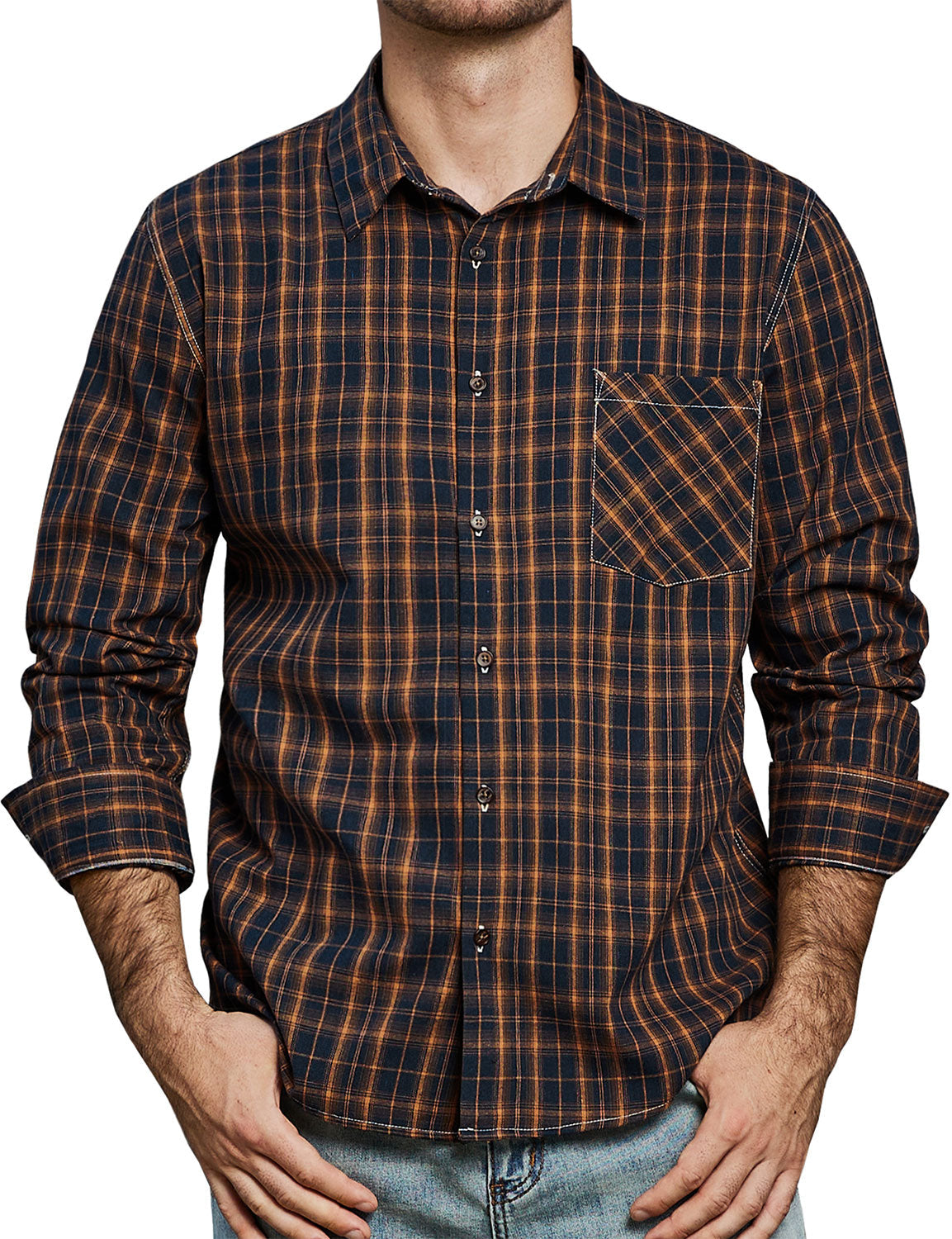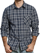 Men's Casual Retro Plaid Pocket Long Sleeve Dress Shirt