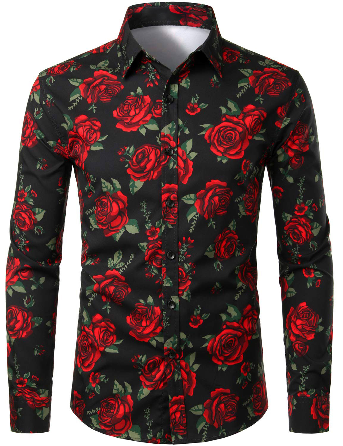 Men's Casual Rose Black Long Sleeve Button Up Shirt