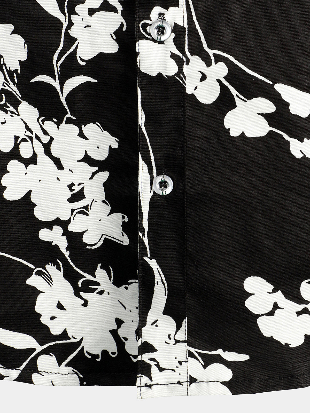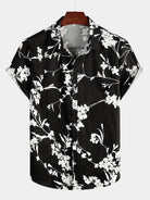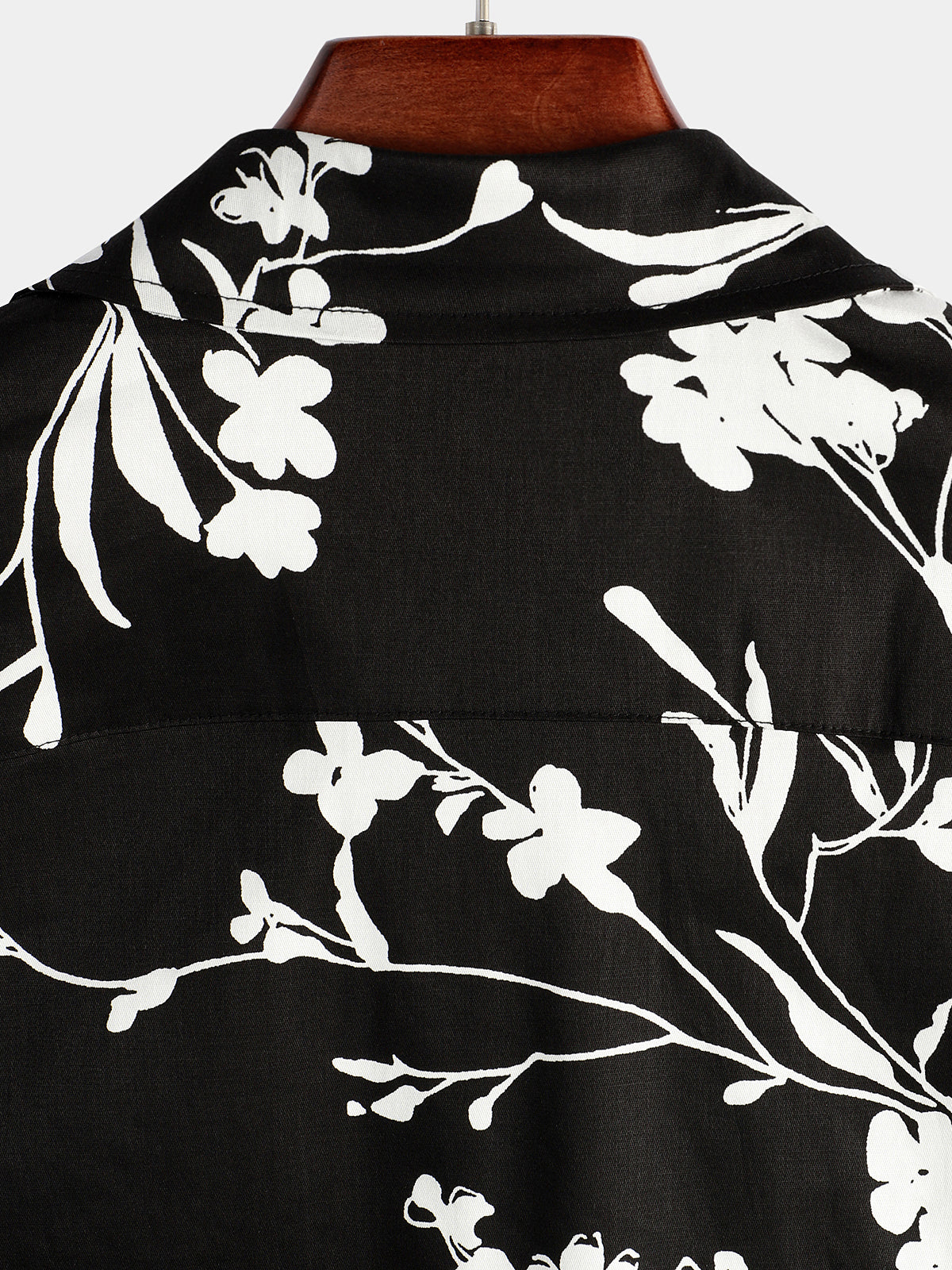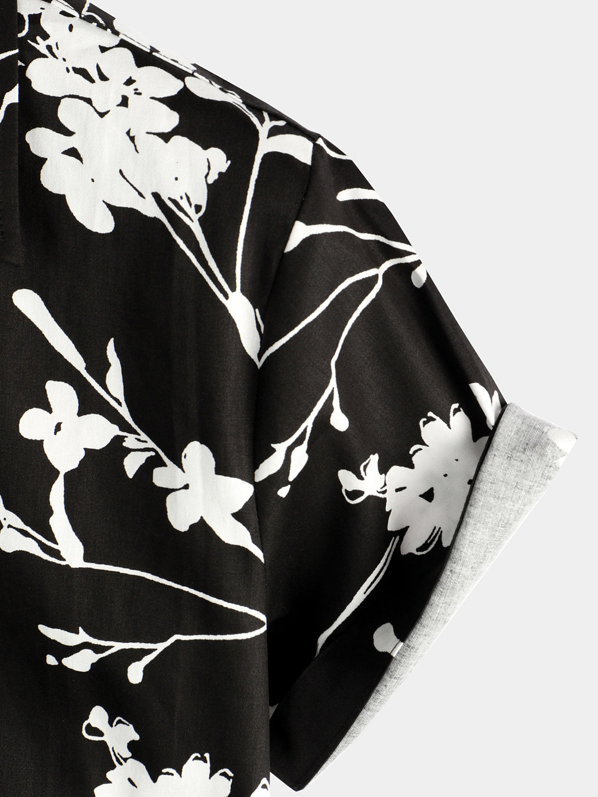 Camisa casual de algodón negra transpirable de manga corta para hombres