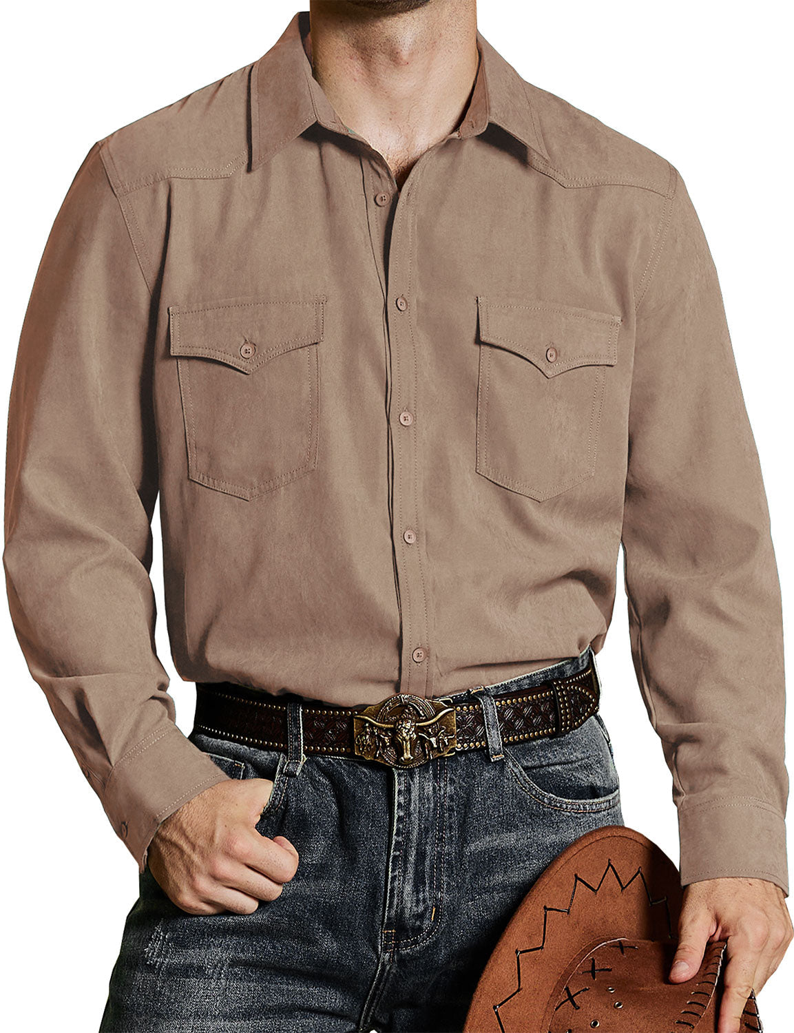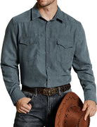 Men's Casual Western Cowboy Pocket Button Up Long Sleeve Shirt