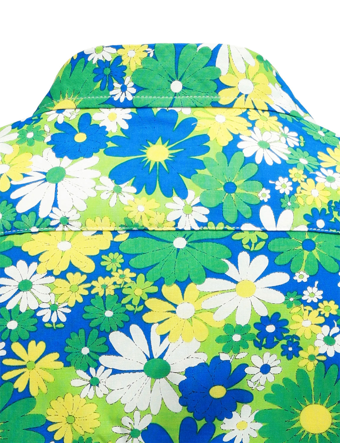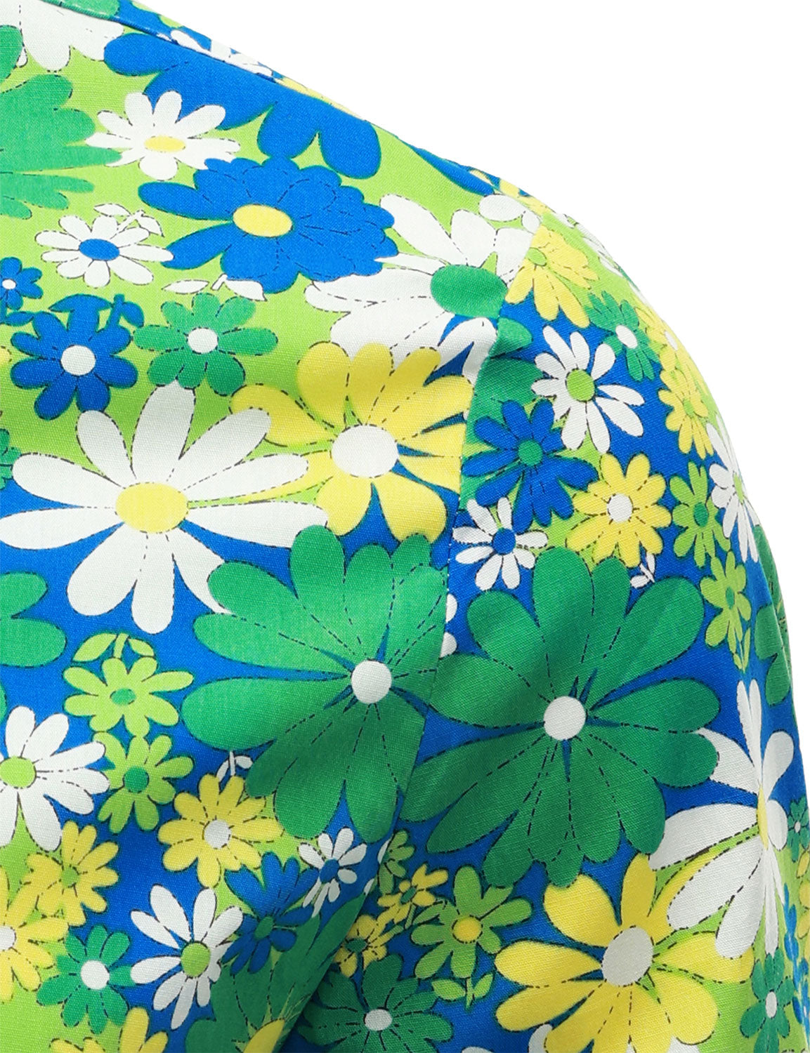Men's Cotton Green Floral Button Up Long Sleeve Shirt