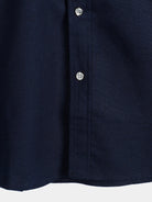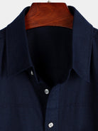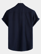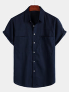 Camisa de manga corta de algodón y lino con dos bolsillos en el pecho en color sólido para hombres