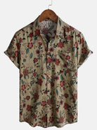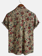 Camisa retro ligera de manga corta con estampado floral para hombre