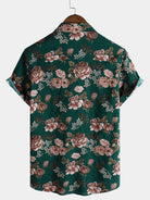 Camisa de manga corta con estampado floral retro verde veraniego para hombre