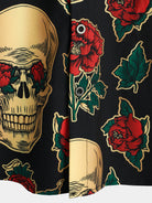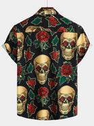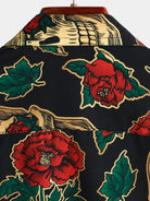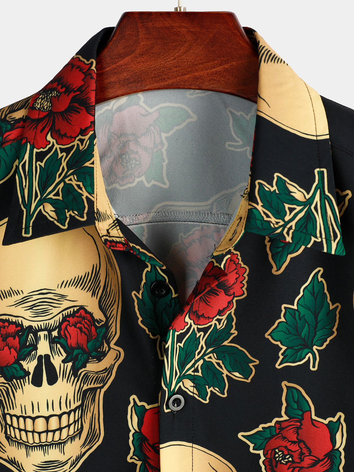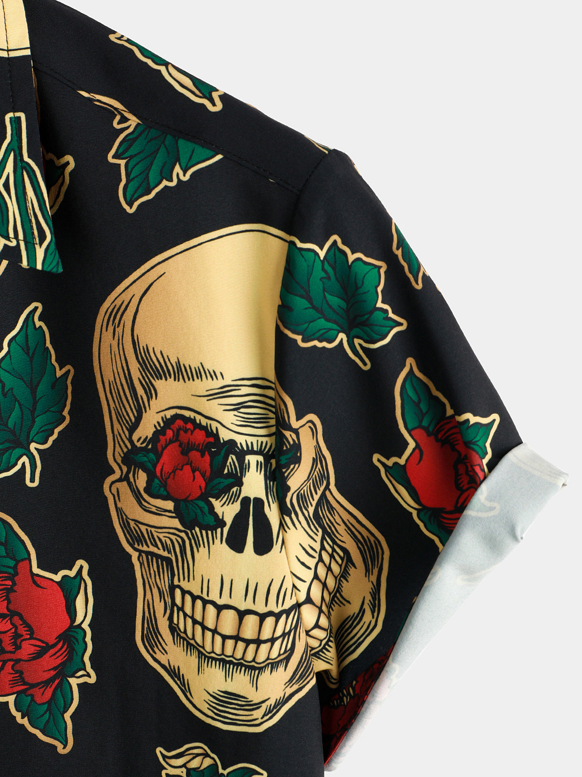 Camisa de manga corta con estampado de calavera y rosa para hombre