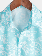 Camisa de manga corta con estampado floral hawaiano azul para hombre