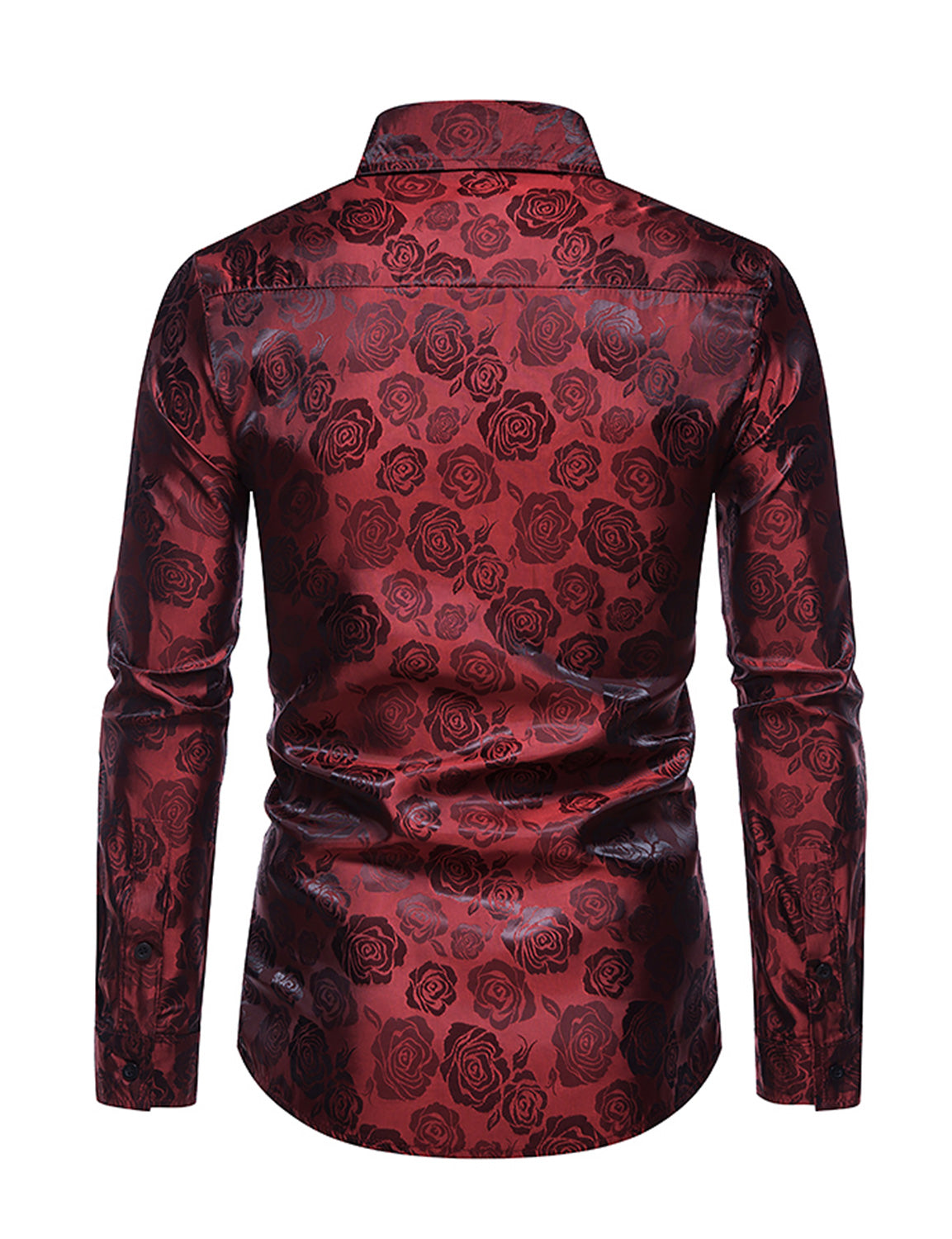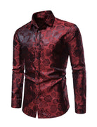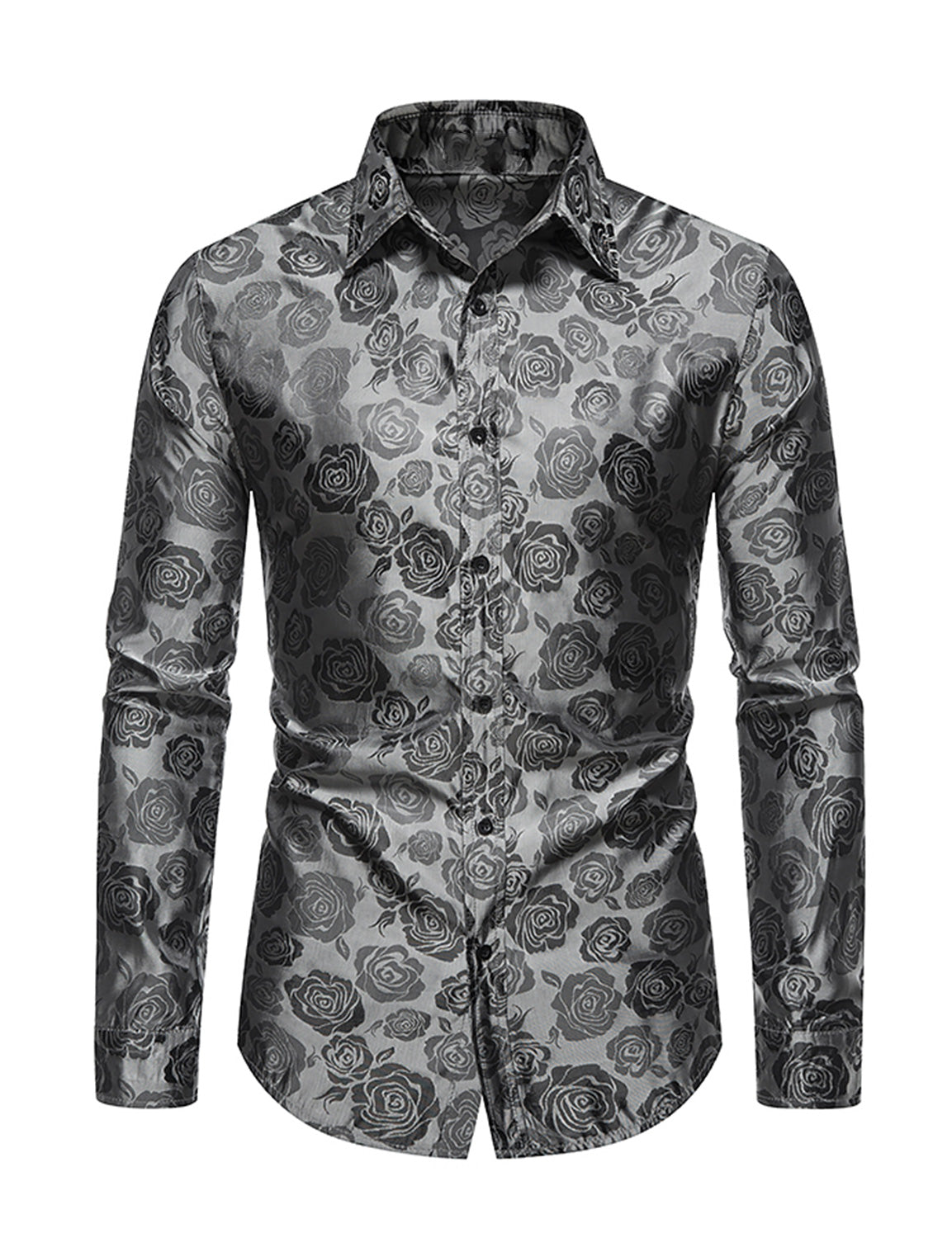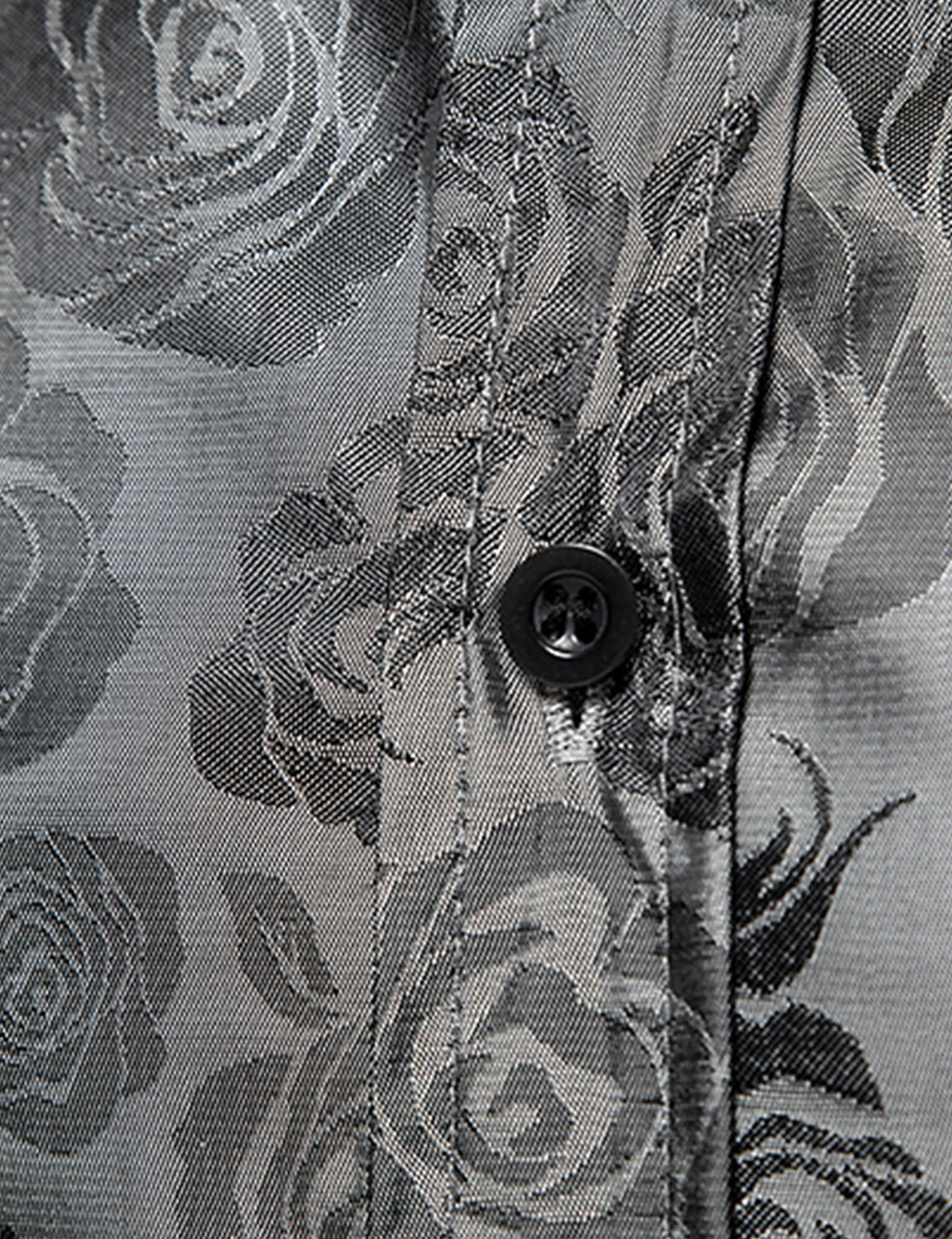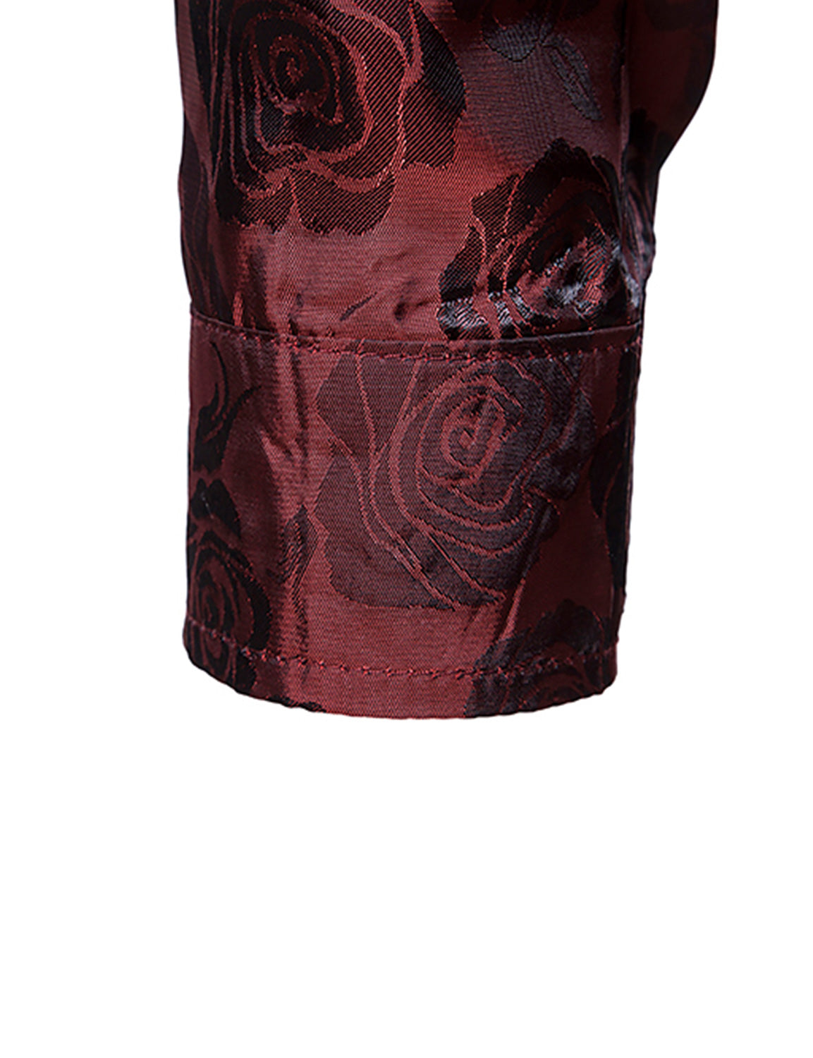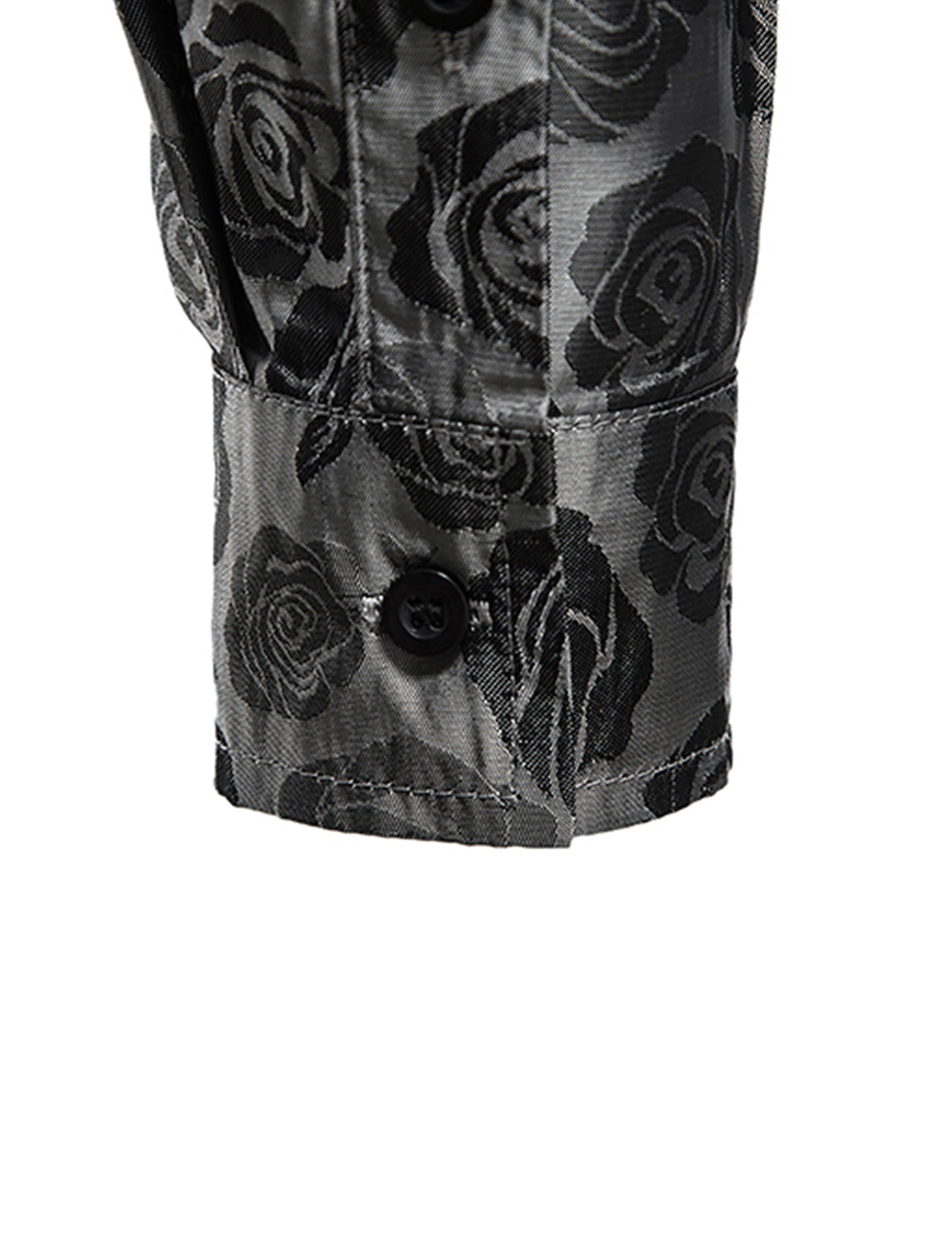 Men's Jacquard Vintage Rose Flower Print Party Prom Long Sleeve Dress Shirt