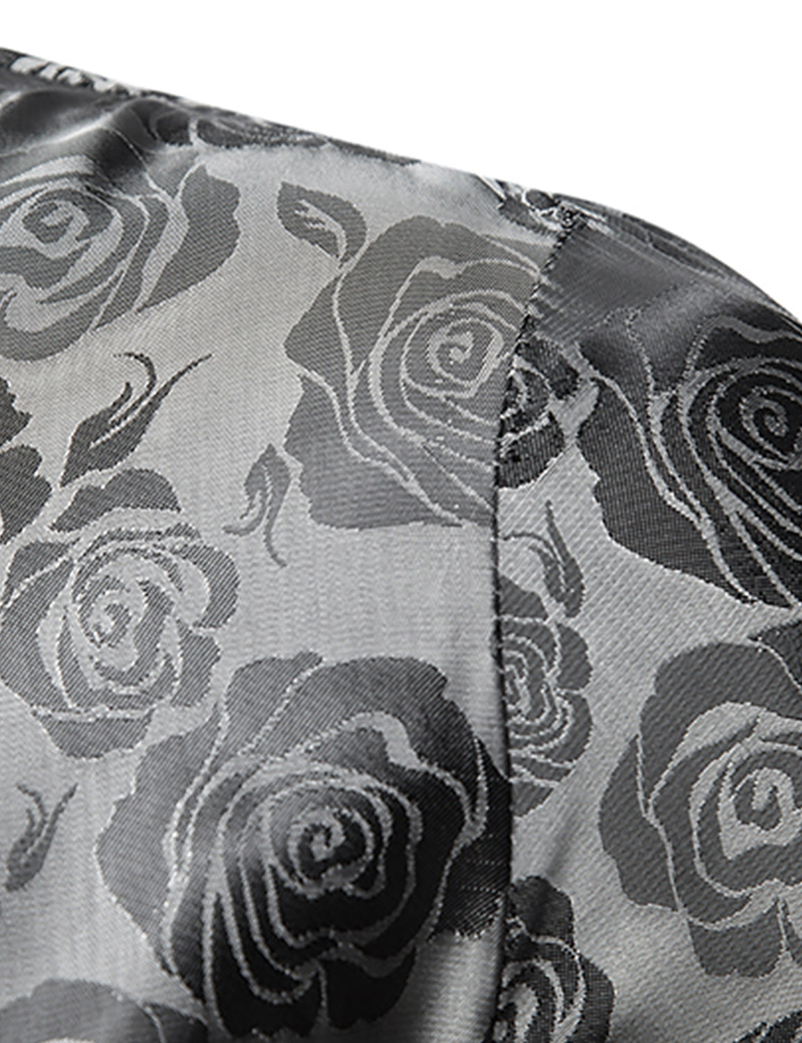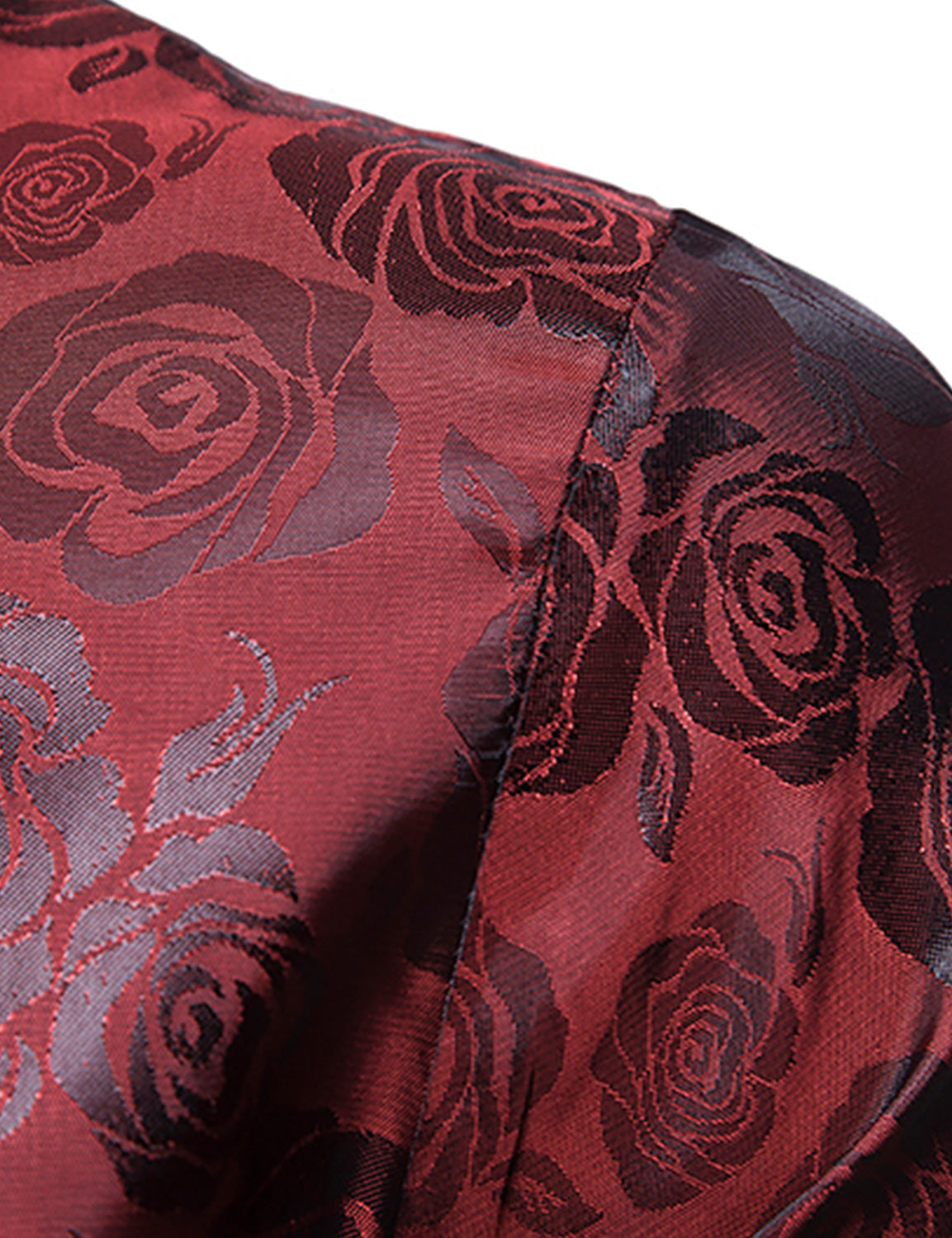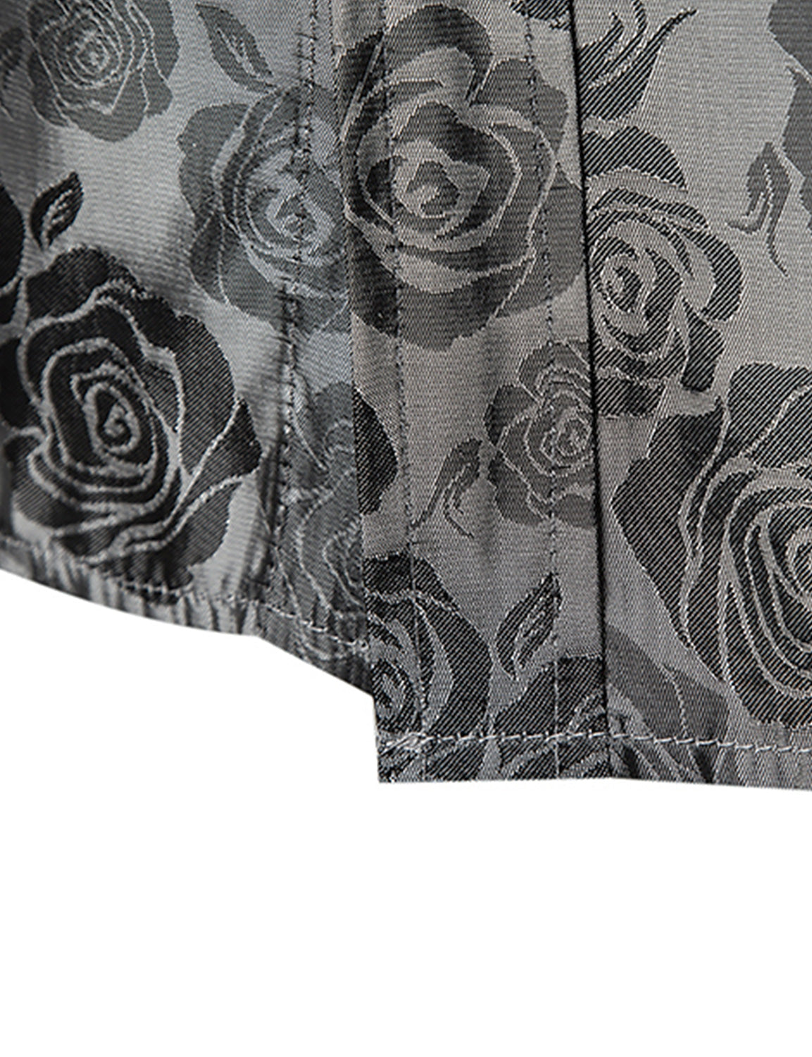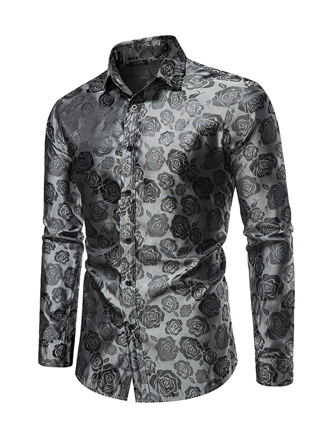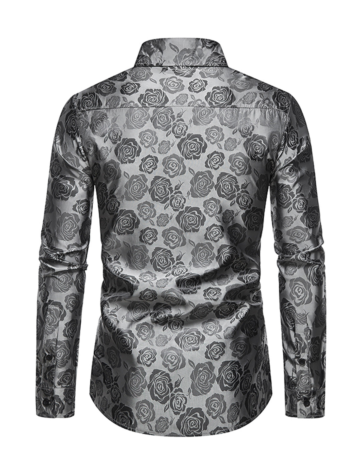 Men's Jacquard Vintage Rose Flower Print Party Prom Long Sleeve Dress Shirt