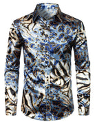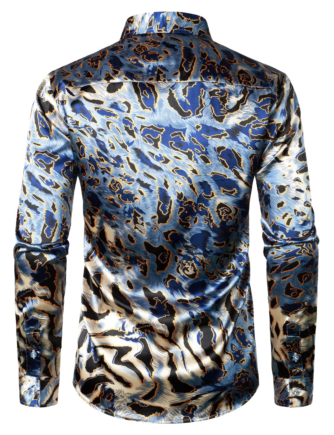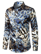 Men's Leopard Vintage Long Sleeve Button Up Dress Shirt