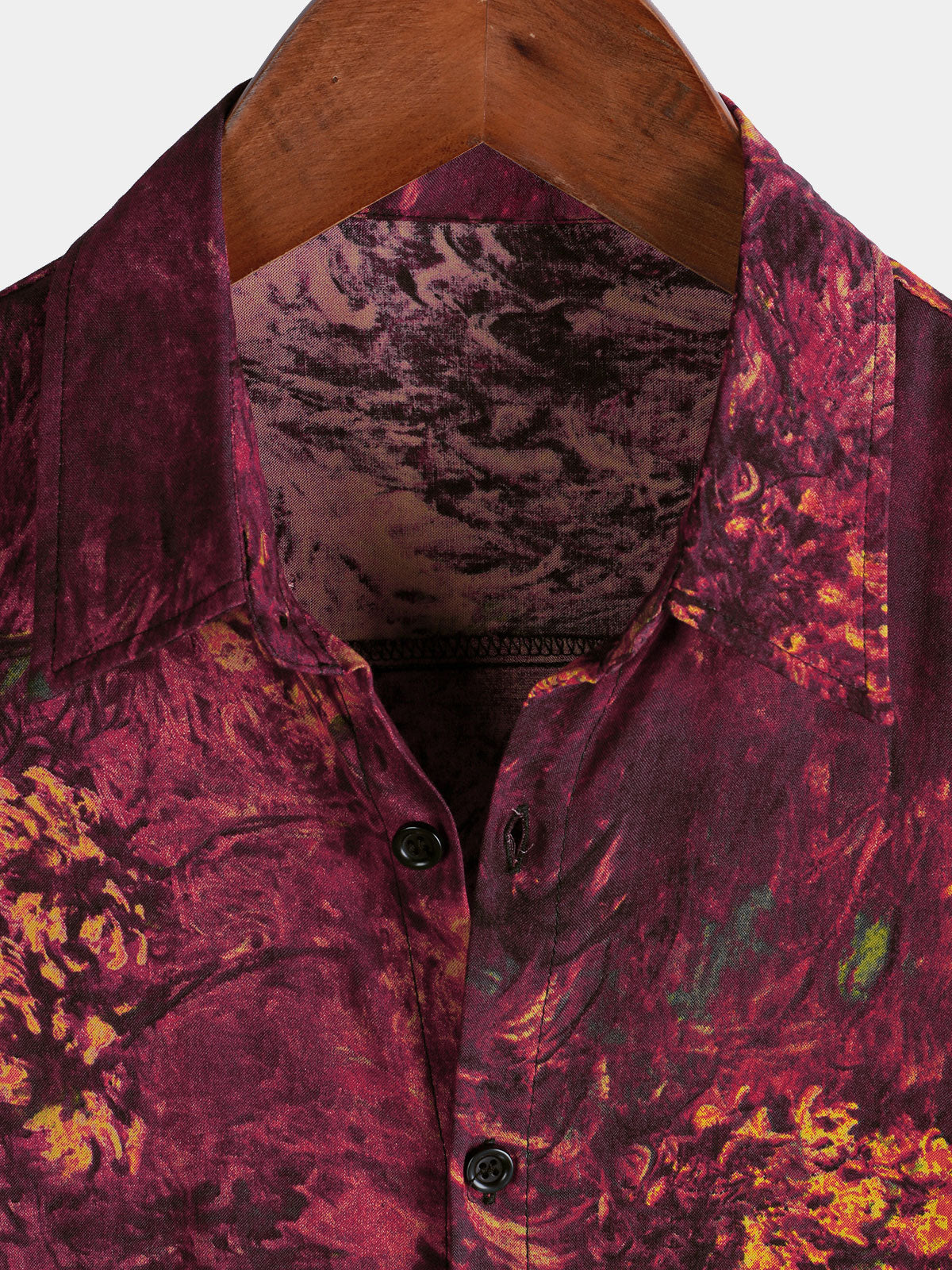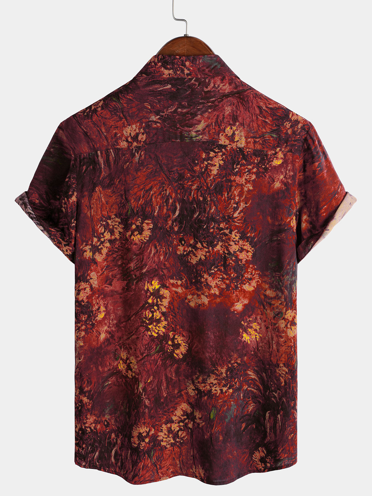 Camisa de manga corta transpirable retro navideña roja para hombre