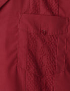 Camisa guayabera cubana roja de manga corta con bolsillo para hombre