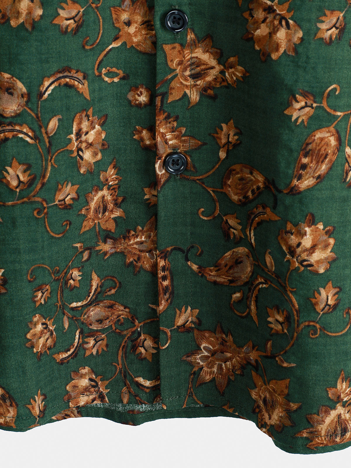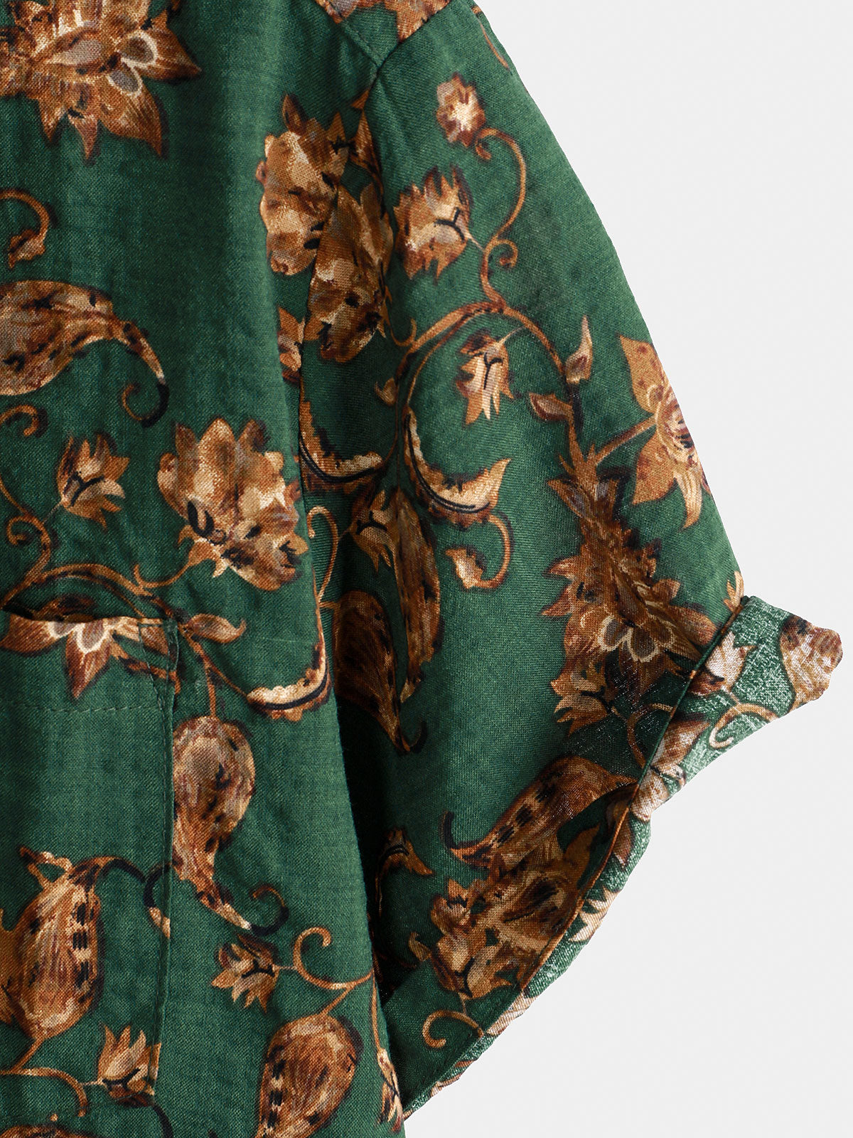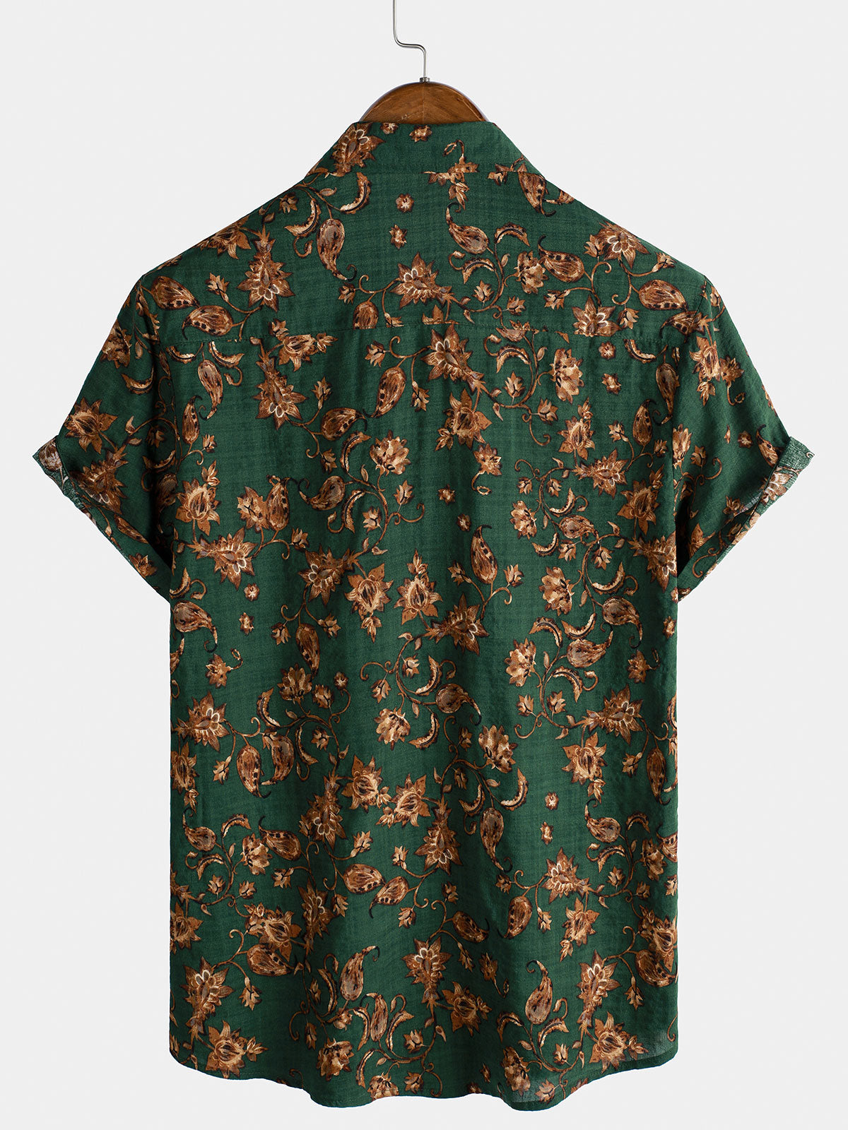 Camisa de manga corta transpirable con bolsillo y estampado floral retro para hombre