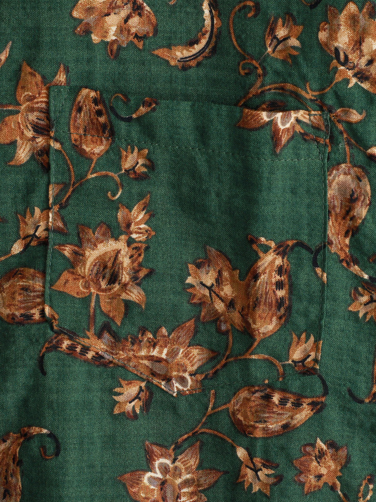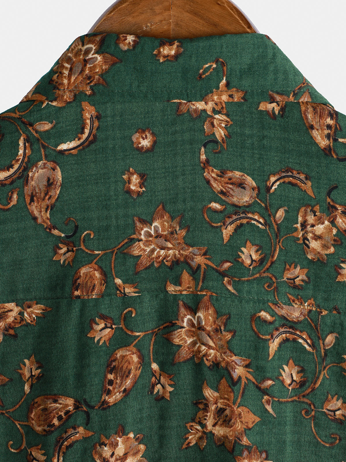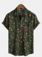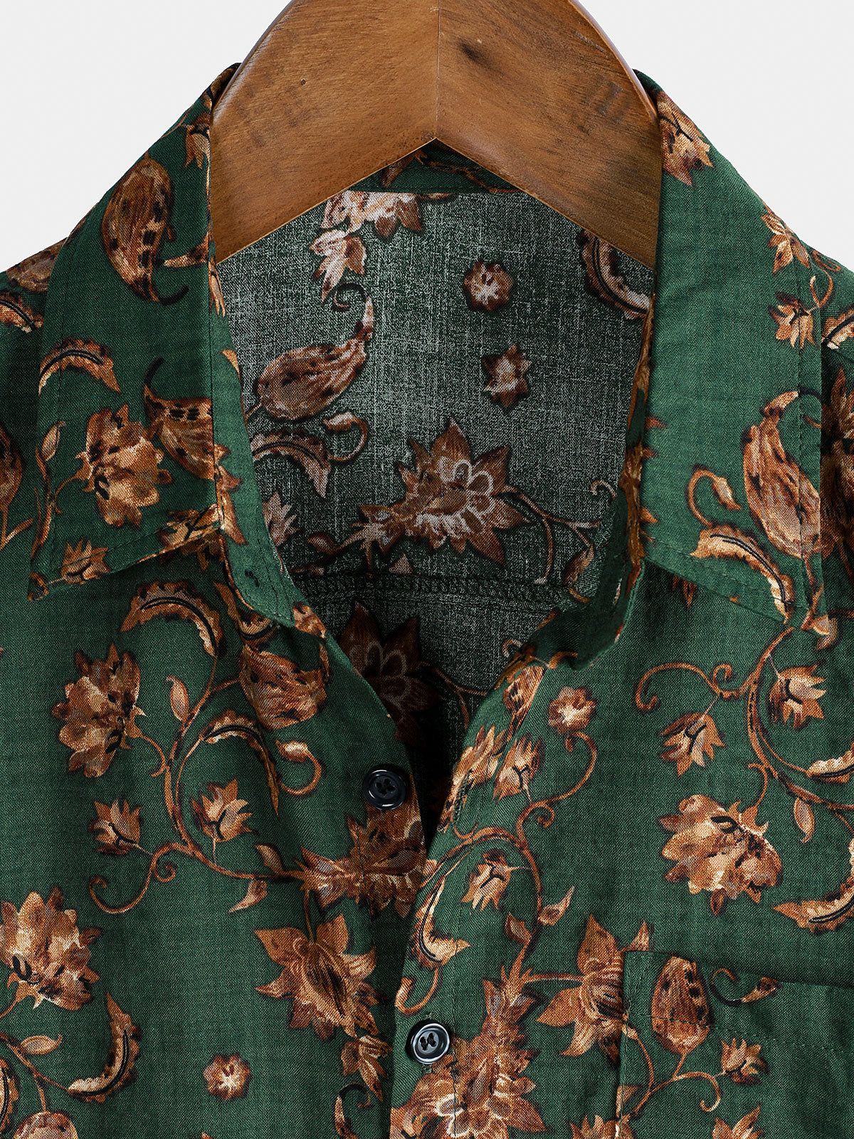 Camisa de manga corta transpirable con bolsillo y estampado floral retro para hombre