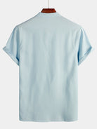 Camisa de hombre de manga corta de color sólido con cuello alto casual