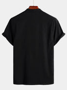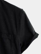 Camisa de hombre de color sólido con cuello alto de lino y algodón
