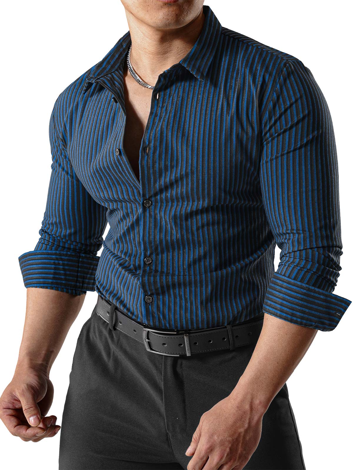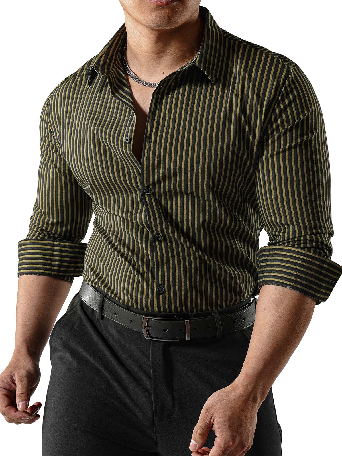 Men's Striped Textured Wrinkle-Free Long Sleeve Shirts