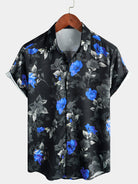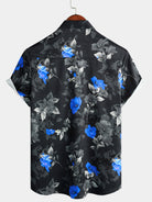 Camisa de manga corta con estampado floral azul de verano para hombre para vacaciones en la playa