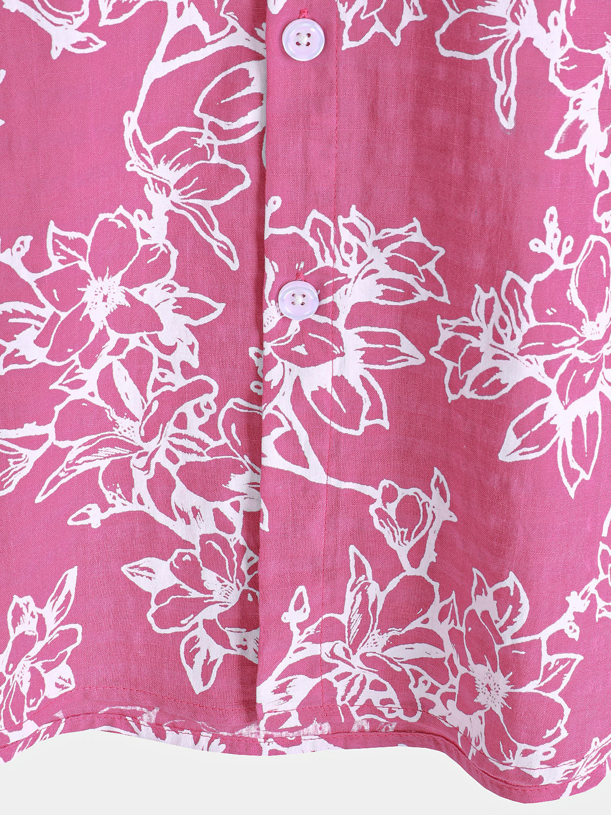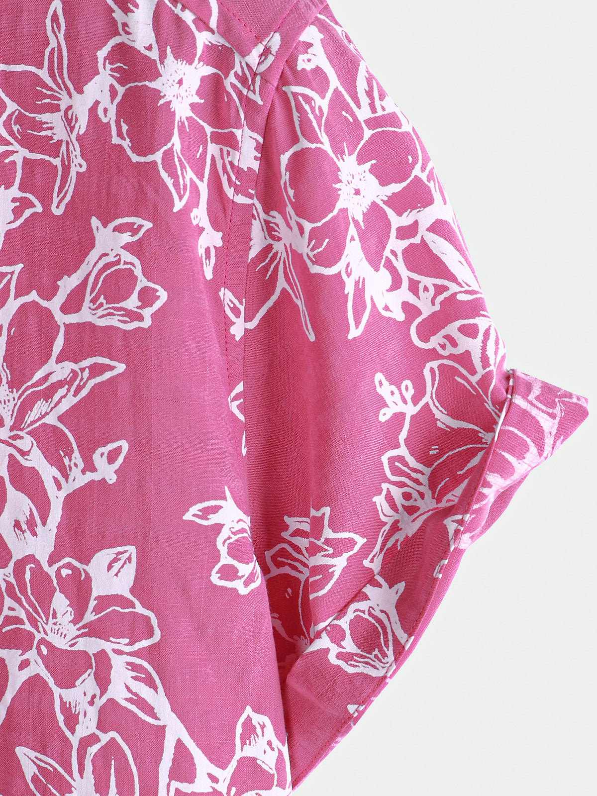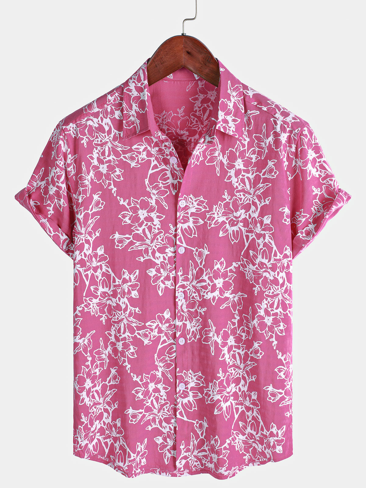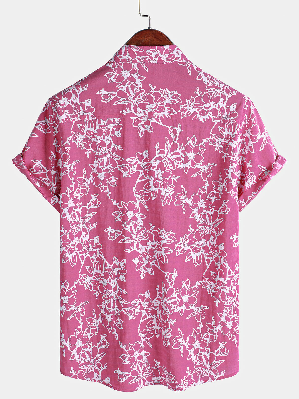 Camisa de algodón de manga corta con estampado floral de verano para hombre