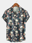 Camisa de manga corta con calavera punk rock de verano para hombre
