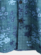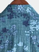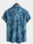 Camisa retro informal de manga corta con bolsillo y estampado floral azul para hombre