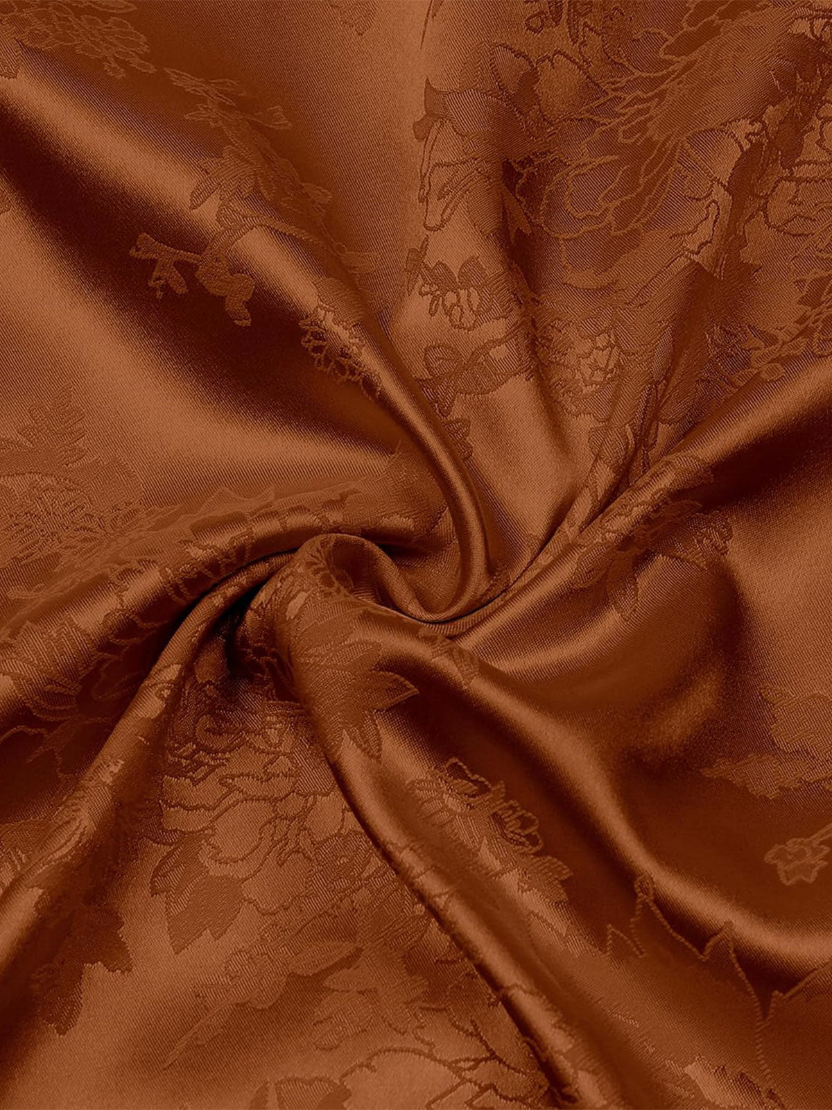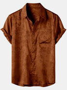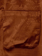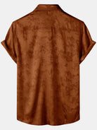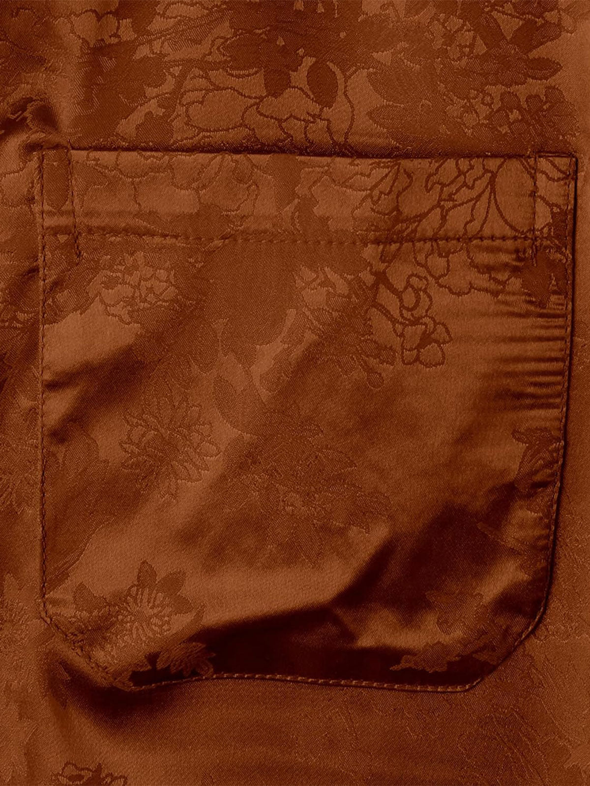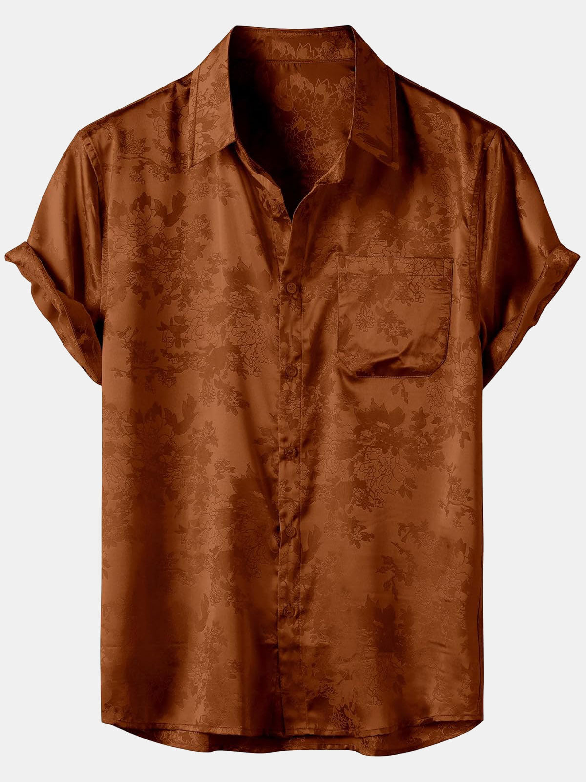 Camisa de manga corta con estampado floral de satén de seda y bolsillo en jacquard marrón para hombre