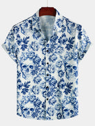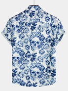 Camisa de manga corta con calavera floral y estilo punk rock para hombre