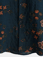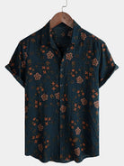 Camisa de algodón de manga corta de verano con estampado floral azul marino para hombre