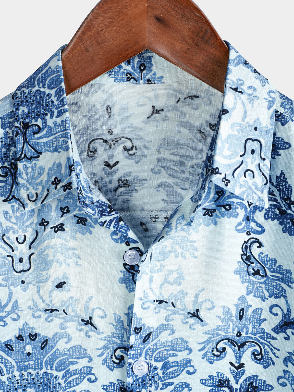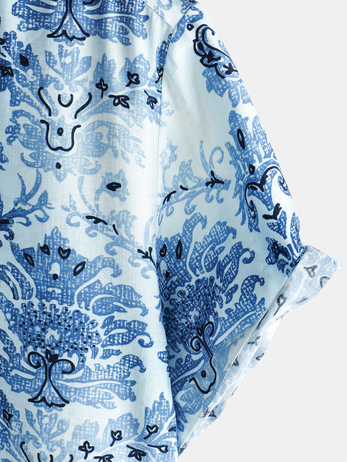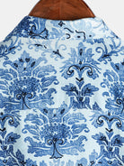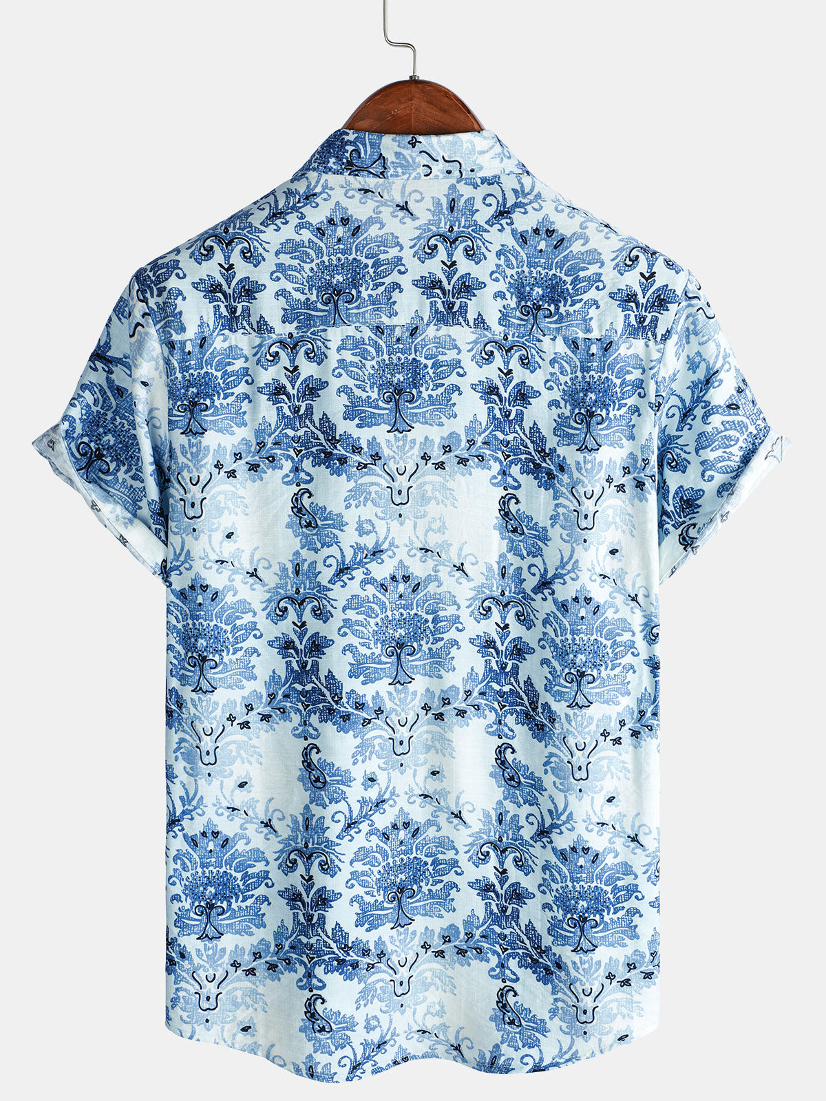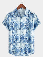 Camisa hawaiana de manga corta con estampado floral azul para hombre