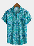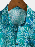 Camisa hawaiana azul de manga corta para hombre