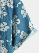 Camisa hawaiana de manga corta con botones y estampado floral festivo en color azul para hombre
