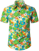 Camisa hawaiana tropical de algodón floral verde para hombres