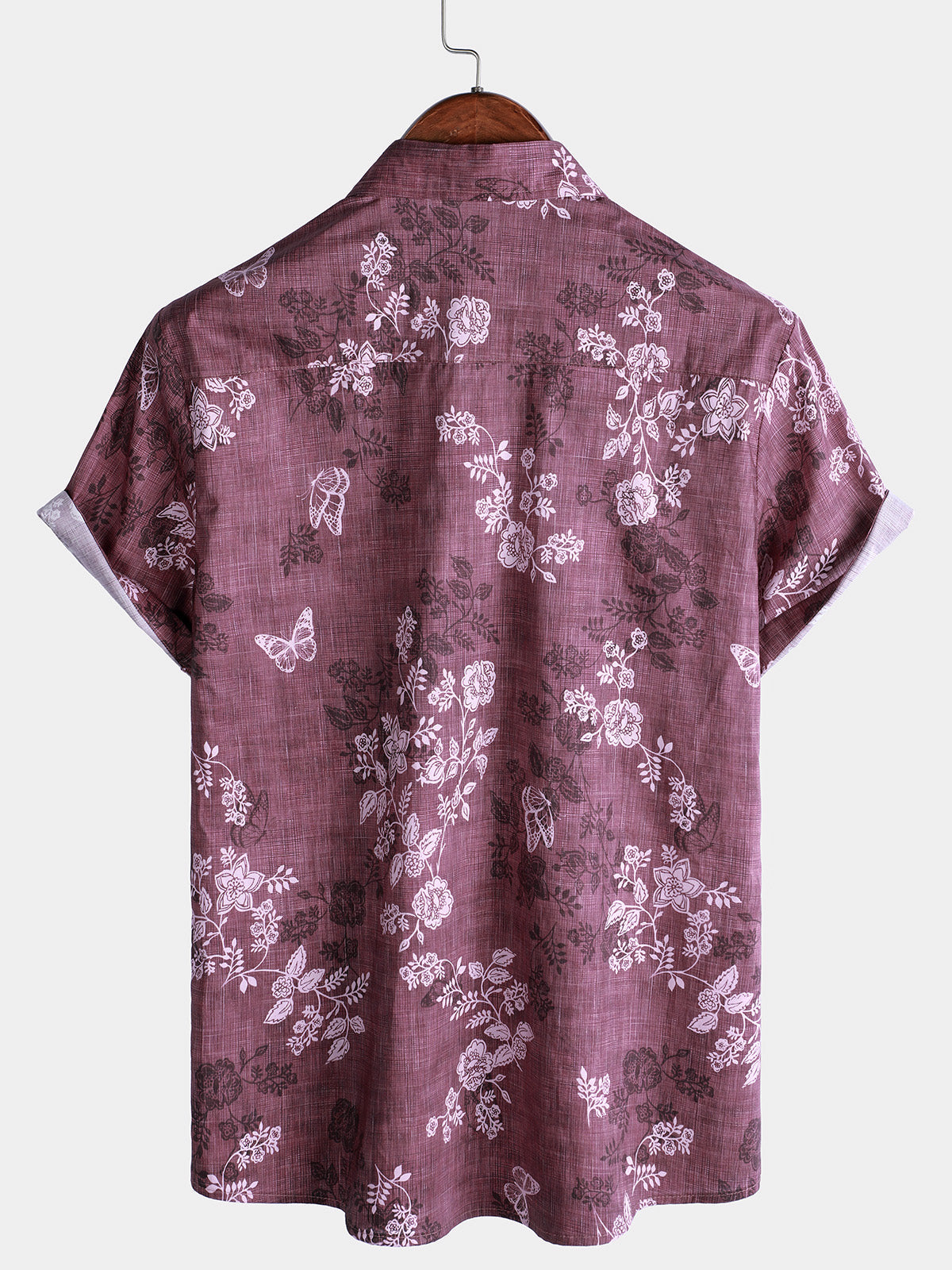 Camisa hawaiana de manga corta con botones y estampado floral para hombre