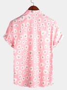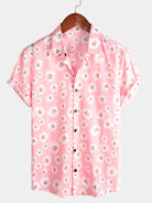 Camisa de algodón hawaiana tropical con estampado floral de margaritas rosas para hombre