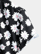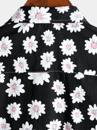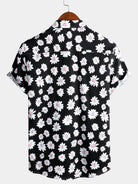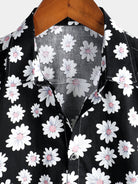 Camisa negra de algodón hawaiana con estampado floral de margaritas para hombre