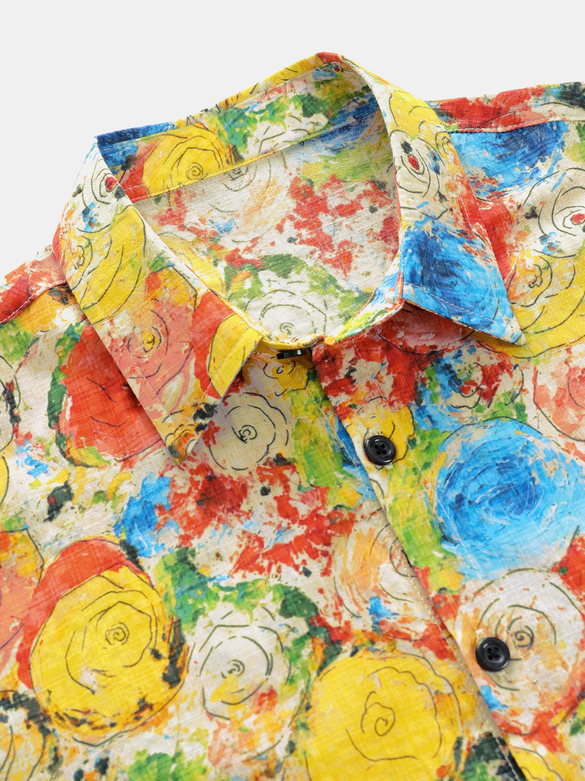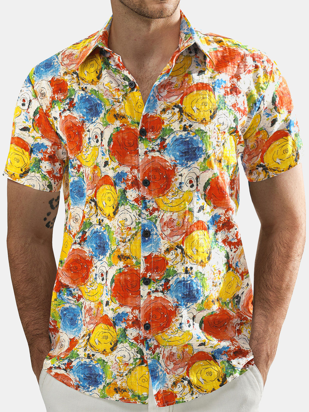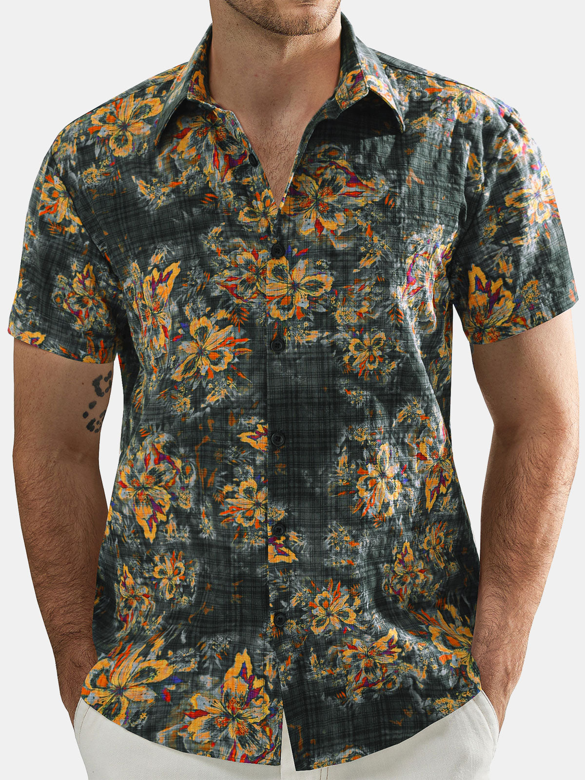 Camisa hawaiana informal de manga corta con estampado floral para hombre