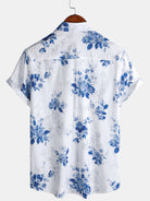 Camisa hawaiana de manga corta con estampado floral azul festivo para hombre